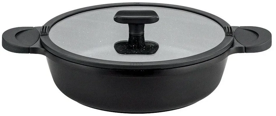 lieferbar-in 3-4 Werktagen bei dirMulex Servierpfanne TOMALIN Premium 28 cm schwarz, Aluguß (Premium Qualität, 2-tlg., Tomalinbeschichtung), induktionsgeeignet schwarz