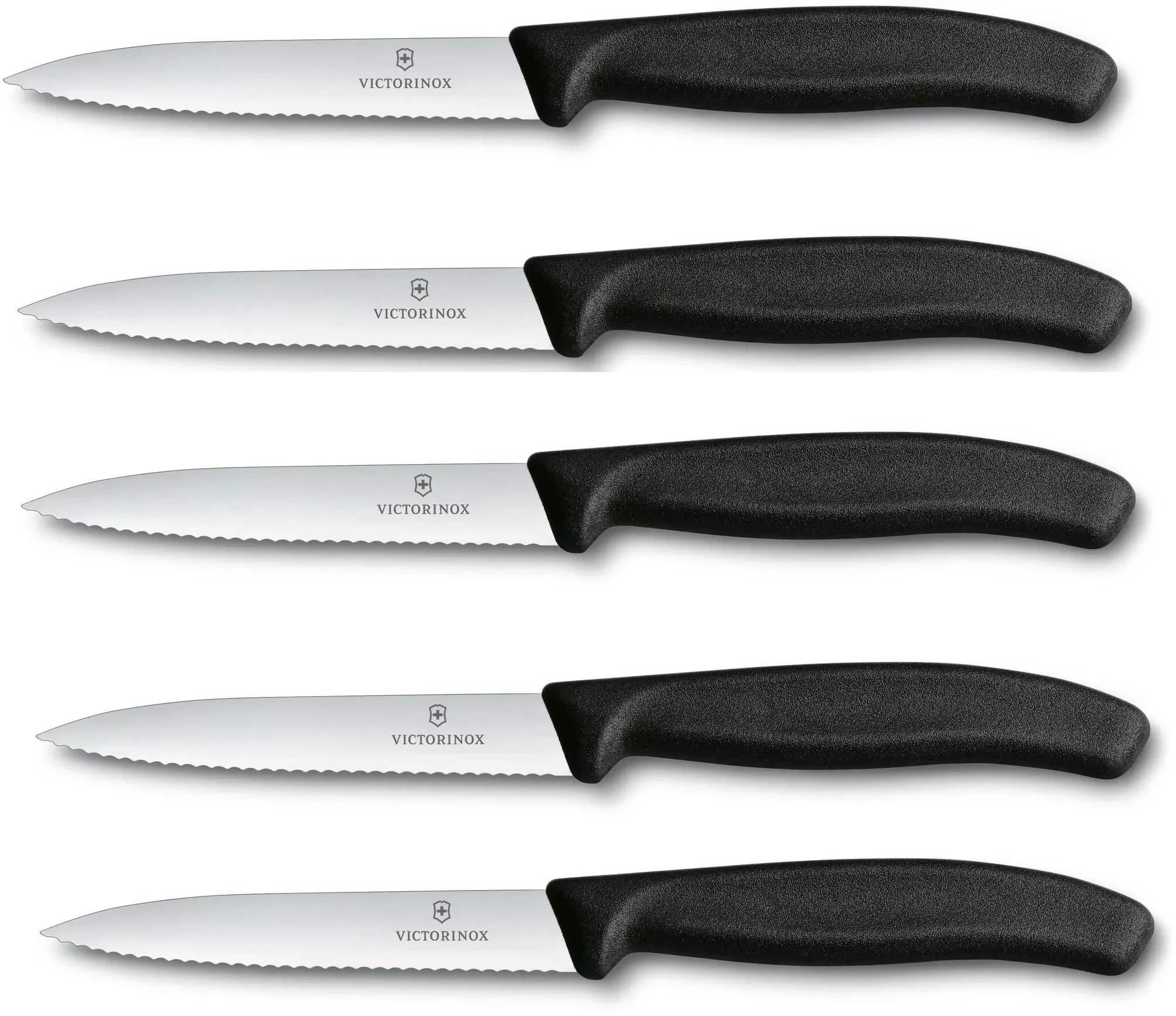 Kaufentscheidung: Wenn Sie Wert auf Qualität, Schärfe und Langlebigkeit legen, sind Victorinox Tomatenmesser eine sehr gute Wahl. Achten Sie auf den Wellenschliff, die Klingenlänge (11?cm) und die gewünschte Griff-Farbe. Sets sind preislich attraktiv, Einzelmesser ideal zum Ausprobieren. Vergleichen Sie immer mehrere Anbieter, um den besten Preis zu finden. Jetzt live Suche nach tomatenmesser victorinox starten! Empfohlene Tomatenmesser victorinox Angebote*Durch Käufe über Links zu Händlern kann diese Website eine Provision erhalten, u.a. durch das eBay Partner Network und das AmazonPartnerNetHier ist eine Auswahl von 15 repräsentativen und empfehlenswerten Victorinox Tomatenmessern aus der Gesamtliste, die verschiedene Preisbereiche und Arten abdecken: Dieses einzelne Tomatenmesser ist mit 4,58 Euro das günstigste Angebot und ideal für den Einstieg oder als Ergänzung. ![]() Victorinox Tomatenmesser Swiss Classic 11cm, rund, mit extra scharfem Wellenschliff, schwarz