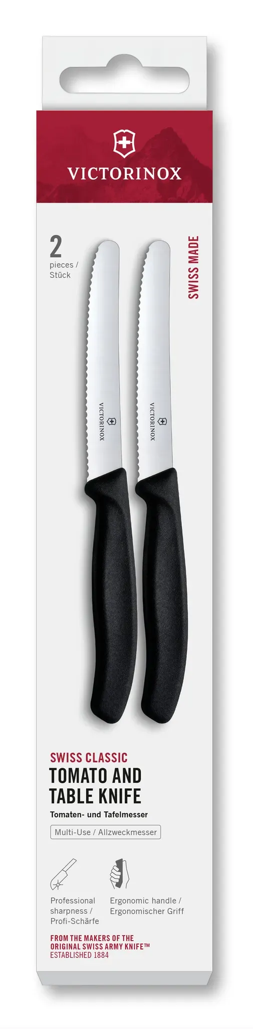 Kategorie: Küchenmesser - Victorinox - GTIN:7611160102454 - ' Modernes Besteck für jeden Tag Tomaten- und Tafelmesser mit extra scharfen Klingen mit Wellenschliff Aus rostfreiem Stahl mit modernen schwarzen Kunststoffgriffen, spülmaschinengeeignet, hergestellt in der Schweiz Höchste Qualität: Die Produkte vom Schweizer Unternehmen Victorinox ren höchste Standards in allen Belangen und die hohe Qualität wird kompromisslos durchgesetzt. Die über 130-jährige Geschichte von Victorinox ist geprägt von einer nachhaltigen Ausrichtung: Tradition, Qualität und Innovation. Abmessungen Tafelmesser pro Stück: Höhe 13 mm, Länge 220 mm, Gewicht 58 g. ' - 16,90 Euro bei voelkner Marktplatz - gefunden von billiger.de Dieses 3-teilige Set mit Gemüsemesser, Tomatenmesser und Schäler für 21,12 Euro ist eine vielseitige Grundausstattung. ![]() ![]()