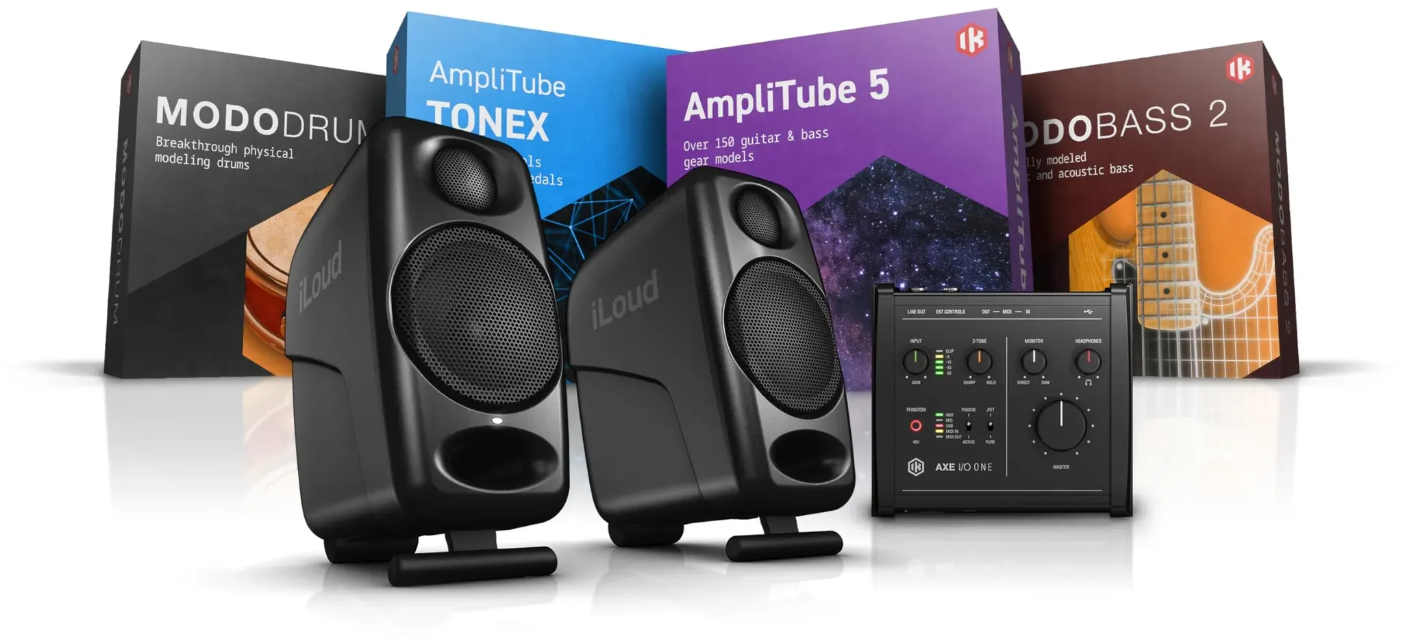 1 Händlerangebote bei billiger.de - Kategorie: Studio & Recording - IK Multimedia - iLoud Micro Monitor - Ultra-compact, high quality reference studio monitors AXE I/O ONE - A do-it-all interface for guitar and bass players AmpliTube 5 - Industry-leading guitar amp & FX modeling software (download) TONEX -Standalone application and plug-in to create, play and share Tone Models (download) MODO BASS 2 and MODO DRUM 1.5 - Physically modeled electric/acoustic bass & acoustic drums virtual instrument (download) - GTIN:8025813967038 Dieses Bundle mit AXE I/O, AmpliTube 5 MAX und TONEX MAX bietet ein komplettes Studio-Setup für Gitarristen und Produzenten. ![]() ![]() IK Multimedia AXE I/O + AmpliTube 5 MAX + TONEX MAX Bundle