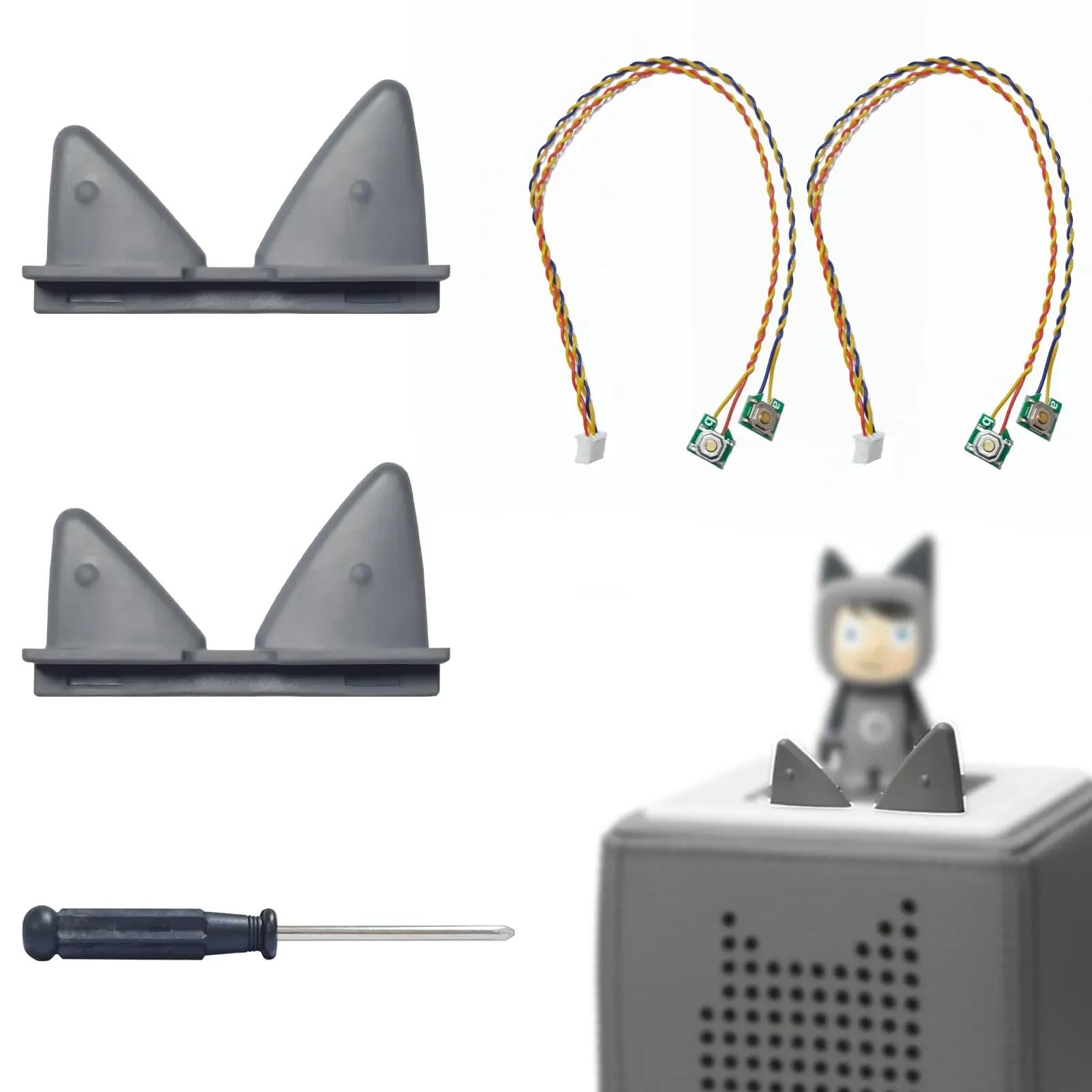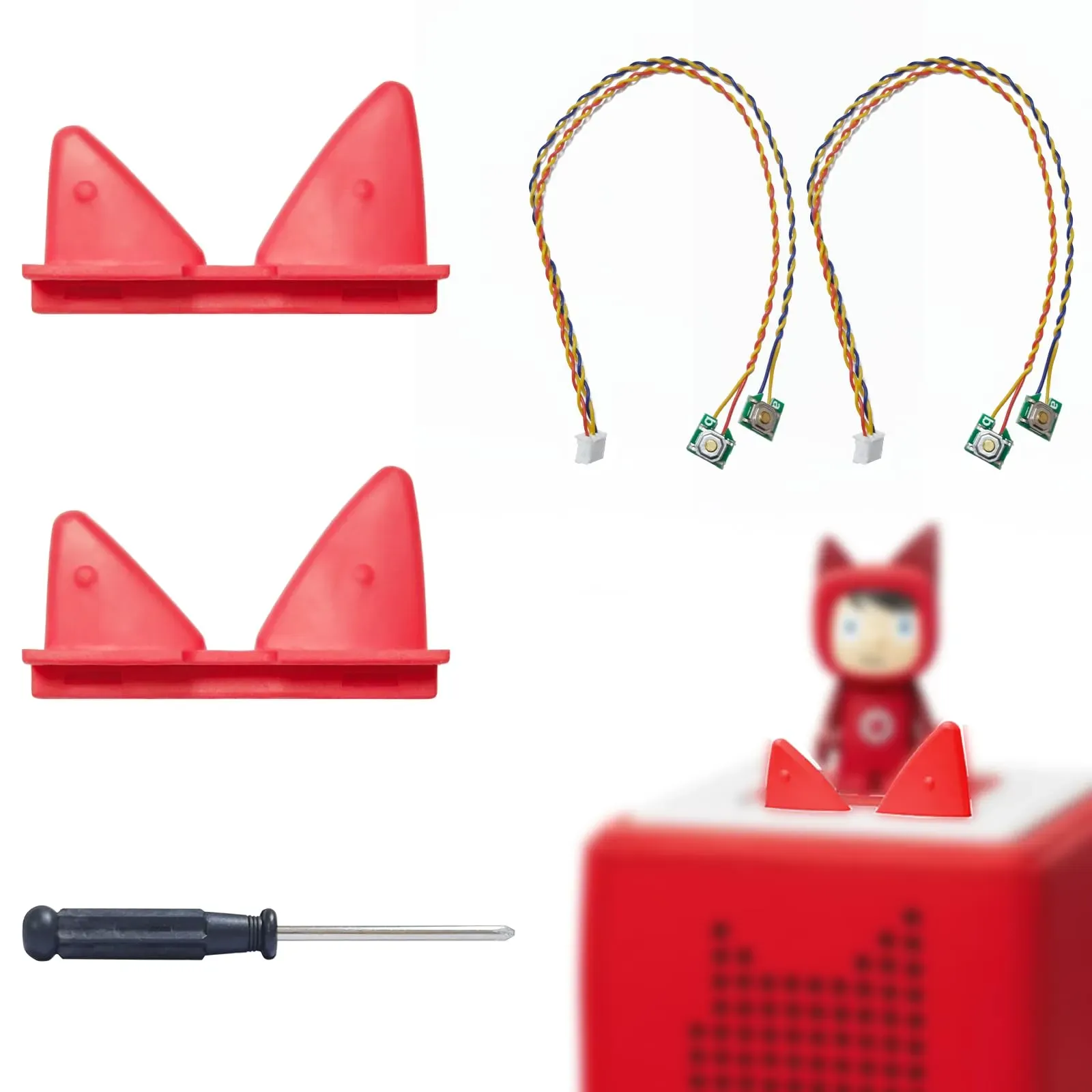 Auf Lager Versand durch AmazonGiklux 2 Stück Toniebox Ohren Ersatzteil Set, Ersatz Ohren für Toniebox Zubehör Lautstärkeregler, Tonie Box Ohren Ersatzteile Komplett mit Kabel, Tonibox Reparieren Ersatzohren, mit Schraubendreher