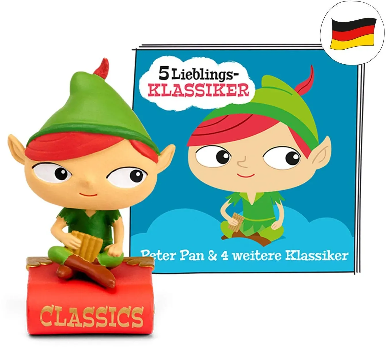 Tonies - EAN: 4251192106896 - Hörfigur für die Toniebox: 5 Lieblings-Klassiker - Peter Pan und 4 weitere Klassiker Eines Nachts bekommen Wendy und ihre Brüder Besuch: Ein Junge namens Peter Pan und eine kleine Elfe tauchen in ihrem Zimmer auf. Die beiden zeigen ihnen, wie man fliegt und nehmen sie mit nach Nimmerland einen Ort, wo es Meerjungfrauen, Indianer und echte Piraten gibt. Peter Pan und 4 weitere Klassiker neuerzählt für kleine Zuhörer. Hörfigur für die Toniebox: 5 Lieblings-Klassiker - Peter Pan und 4 weitere Klassiker Tonies sind Hörfiguren für die Toniebox. Sie machen Hören anfassbar, denn mit ihnen bedient man die Toniebox. Man kann sie aber auch sammeln und mit ihnen spielen. Um der Geschichte zu lauschen, stellt man die Hörfigur einfach auf die Toniebox. Eines Nachts bekommen Wendy und ihre Brüder Besuch: Ein Junge namens Peter Pan und eine kleine Elfe tauchen in ihrem Zimmer auf. Die beiden zeigen ihnen, wie man fliegt und nehmen sie mit nach Nimmerland einen Ort, wo es Meerjungfrauen, Indianer und echte Piraten gibt. Peter Pan und 4 weitere Klassiker neuerzählt für kleine Zuhörer. - bei rebuy.de - aus Yadore Produktdaten ![]() ![]() Tonies Figur - - Peter eBay Pan - 5 klassische Geschichten. EINGESTELLT.