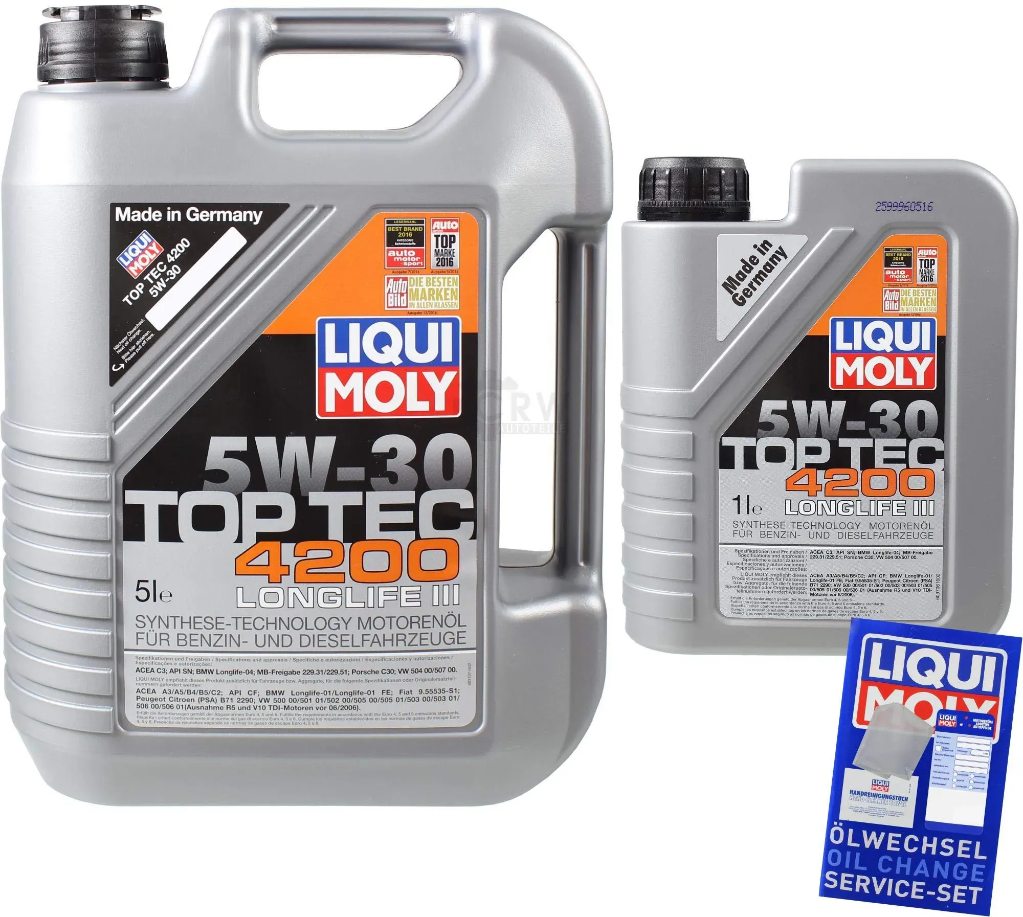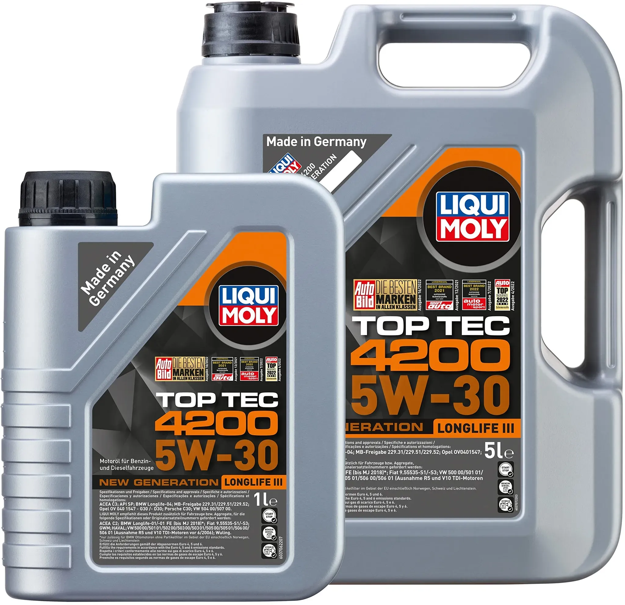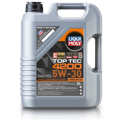 Kategorie: Motoröle - LIQUI MOLY - GTIN:4100420037061 - Liqui Moly Top Tec 4200 5W-30 New Generation Das Liqui Moly Top Tec 4200 5W-30 New Generation ist ein Hightech-Leichtlaufmotoröl auf Basis von Synthesetechnologie. Es schützt hervorragend vor Verschleiß, senkt den öl- und Kraftstoffverbrauch und sorgt für eine schnelle ... - 13,88 Euro bei ELW-Fahrzeugteile - gefunden von billiger.de Dieses 5-Liter-Gebinde ist eine preiswerte Option für den regelmäßigen Ã-lwechsel. ![]() ![]() LIQUI MOLY Top Tec 4200 5W-30 5 l