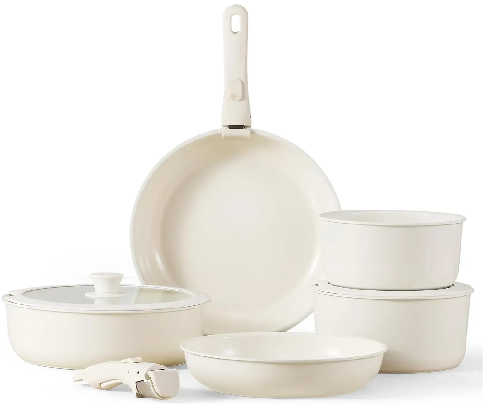 Verfügbarkeit: Auf Lager - Kategorie: Töpfe - auroay - ð³14-teiliges Kochgeschirrset Unser Töpfe Set enthält: 1*20 cm Schmortopf, 1*26 cm tiefe Bratpfanne, 1*26 cm flache Bratpfanne, 1*26 cm quadratische Grillpfanne, 1*20 cm Deckel, 1*26 cm Deckel, 2*20 cm Kühlschrank-Deckel, 2 abnehmbare Griffe und 4 unverzichtbare Küchenutensilien alles, was Sie für Ihre kulinarischen Bedürfnisse benötigen! ð³PFOA-/PTFE-freie Pfanne mit abnehmbarem GriffDie antihaftbeschichteten Pfannen verwenden eine doppelte, lebensmittelechte Beschichtung (LFGB-zertifiziert) und sind frei von PFOA und PTFE. Die Griffe aus Bakelit und Silikon sind hitzebeständig, kratzfest und tragen bis zu 10 Pfund (ca. 4,5 kg). Sie sind passend für alle Pfannen mit abnehmbarem Griff. ð³Hitzebeständig und für alle Herdtypen sowie Backöfen geeignetDie Pfannen aus unserem Küchenutensilien-Set bestehen aus hochwertigem Aluminiumdruckguss und verteilen die Wärme schnell und gleichmäßig. Der magnetisierbare Edelstahlboden eignet sich für Induktions-, Gas- und Keramikherde sowie für den Backofen. Für Langlebigkeit und gesunde Ernährung wird eine Nutzung bei niedriger Hitze (max. 200 °C) mit wenig öl empfohlen. ð³ Platzsparendes Stapeldesign Dank abnehmbarer Griffe lassen sich Topf- und Pfannensets platzsparend stapeln. Die Griffe können abgenommen werden, sodass die Pfanne direkt vom Herd in den Backofen, auf den Tisch oder in den Kühlschrank transportiert werden ... Das Tefal Topf-Set Ingenio Preference ist ein hochwertiges Edelstahl-Set, das platzsparend und für alle Herdarten geeignet ist. ![]() ![]() Tefal Topf-Set Ingenio Preference, Topfset Induktion, abnehmbarer Griff, platzsparend, Edelstahl (Set, 4-tlg., 3x Stielkasserollen à 16/18/20 cm, 1x abnehmbarer Griff), stapelbar, hochwertiger Edelstahl, für alle Herdarten geeignet, L898S4 silberfarben