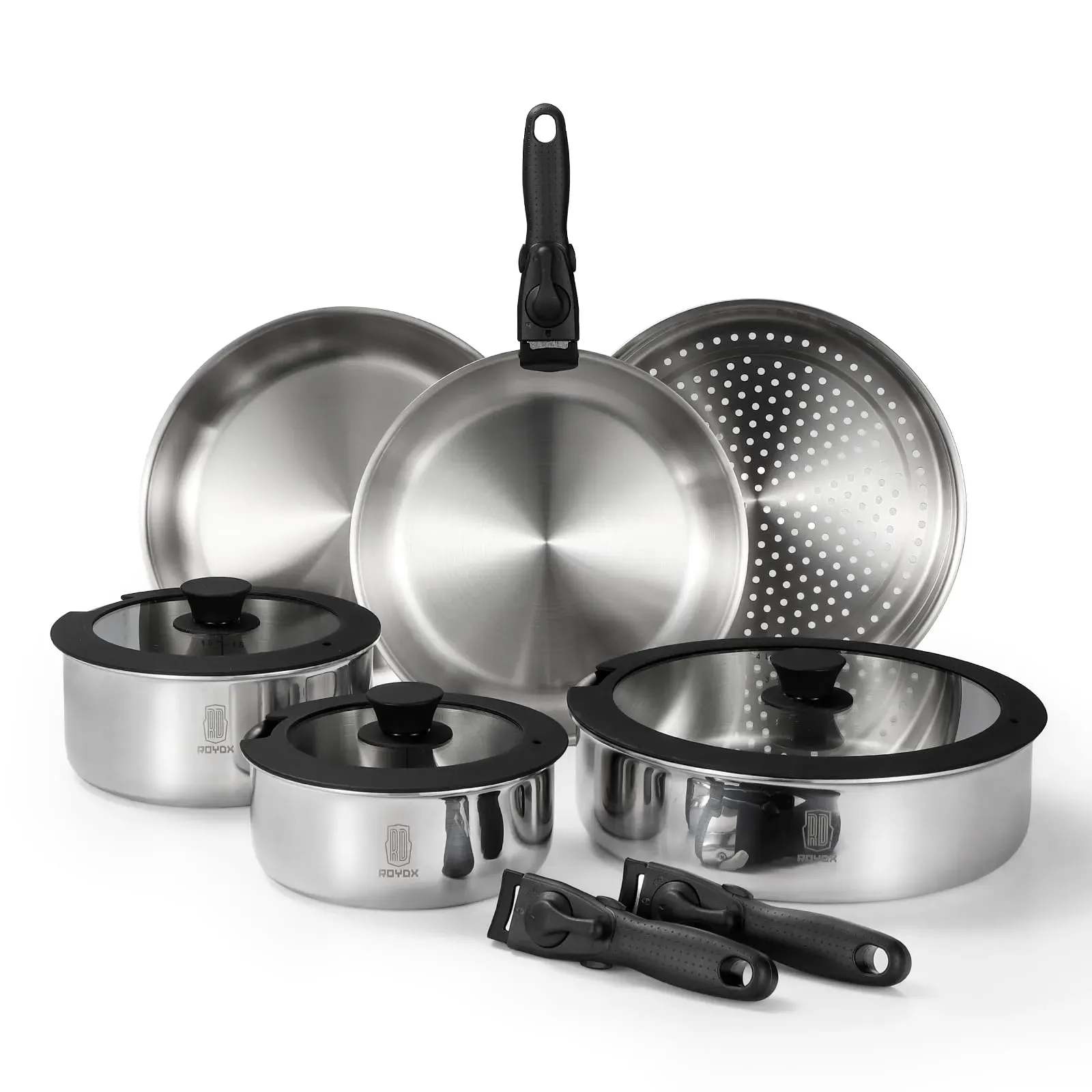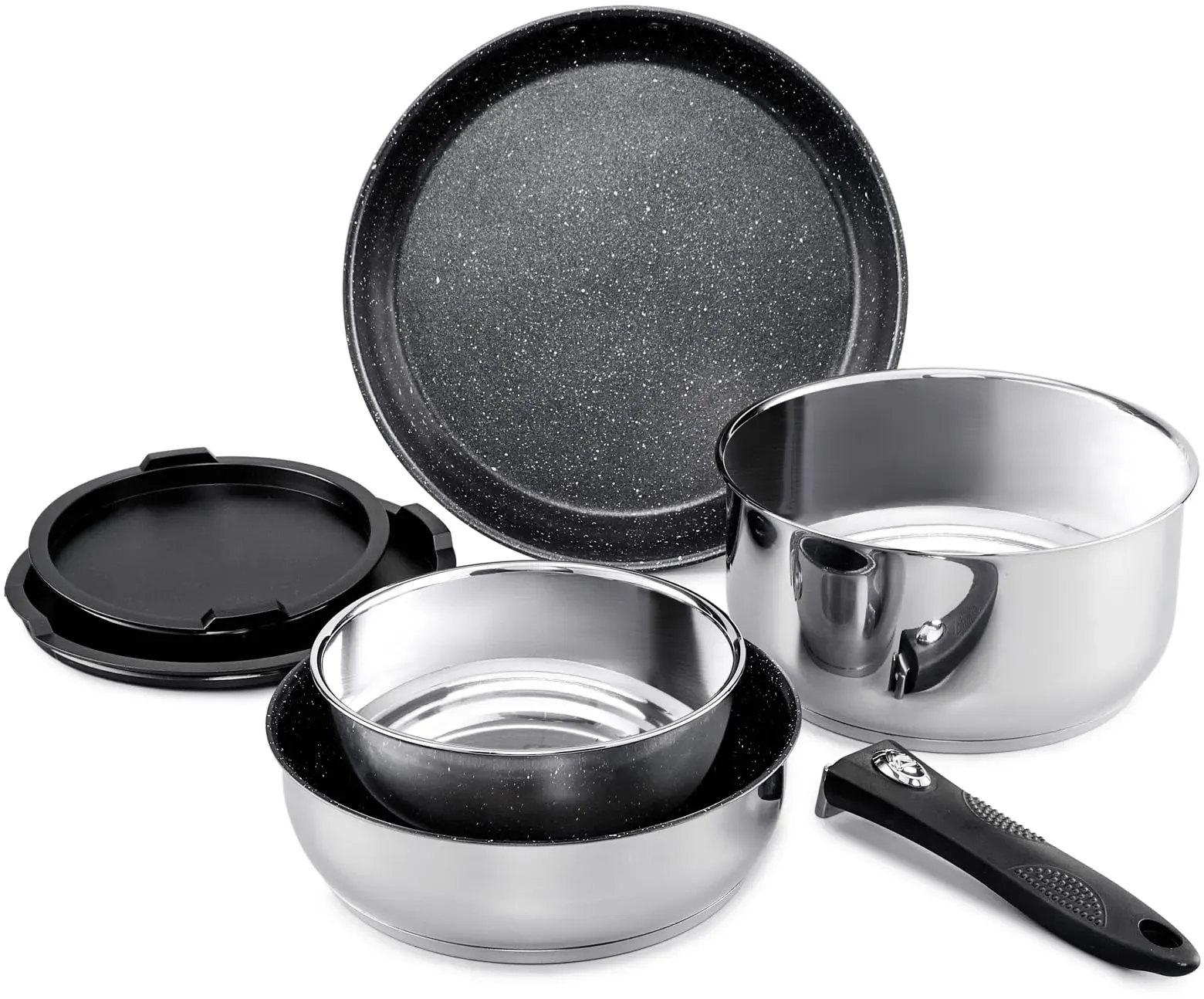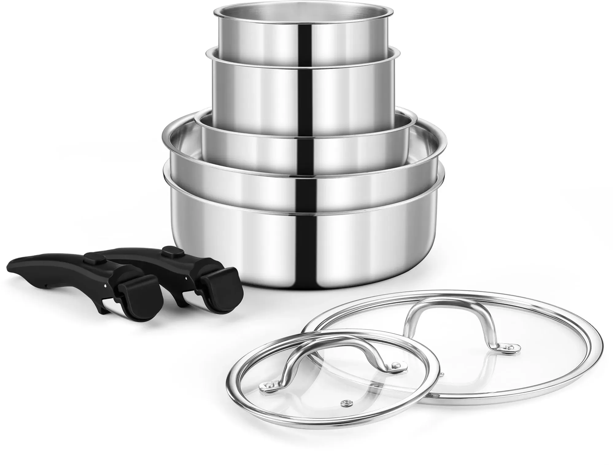 Auf Lager Versand durch AmazonGerlach Smart Steel Topf-Set Edelstahl Abnehmbarer Griff Kochtopf-Set Induktion Induktionstpfe-Set Tpfe-Set Induktionsgeeignet Kochgeschirr 3 Stck, Gro, Silber