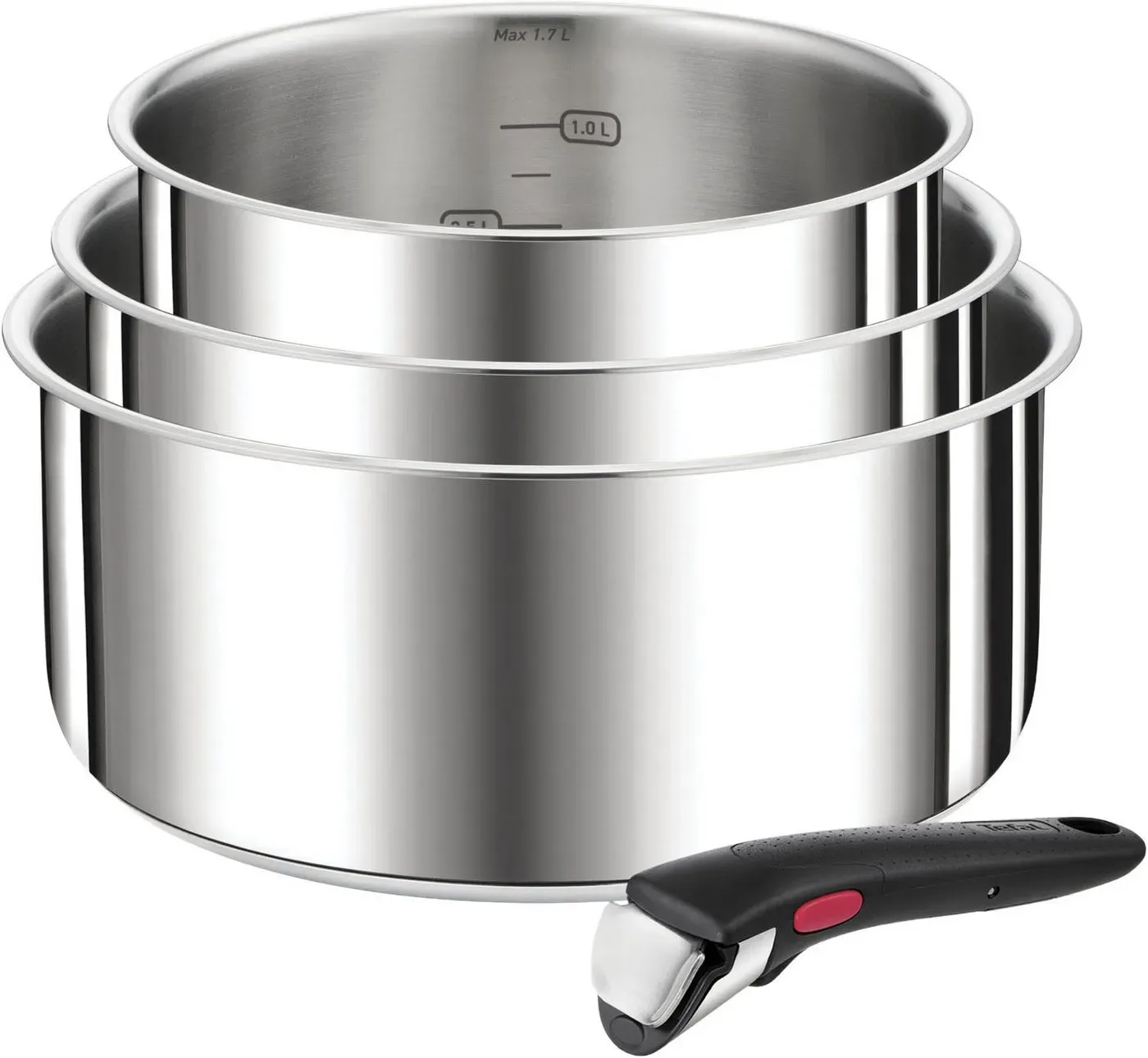 Auf Lager Versand durch AmazonTefal Ingenio Unlimited On 4-teiliges Kasserollenset, 16/18/20 cm, Topfset abnehmbarer Griff, stapelbar, platzsparend, Topfset Induktion antihaftversiegelt, einfache Handhabung und Reinigung, L39594