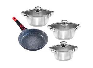 Kategorie: Töpfe - smh line - GTIN:6097039425427 - SMHLINE Antihaftbeschichtung & Leicht zu reinigen. Robust | Rostfrei | Hygienisch | Pflegeleicht Anti-Bakteriell | Spülmaschinenfest | Antihaft-Marmorbeschichtung GRANITEC CERAMIC von ILAG ausgestattet und einer 5-lagigen Antihaftbeschichtung mit Keramikverstärkung Abnehmbare Silikon-Griffe | Geeignet für alle Herdarten, auch Induktion | Kratzfest | PFOA frei | Eco freundlich Die hochwertige SMHLINE Antihaftbeschichtung ist sicher und gesund, 100% frei von APEO und PFOA, was Ihnen bei der Lösung des Reinigungsproblems helfen kann. Sie brauchen nur einen weichen Schwamm oder Lappen, um öl leicht zu entfernen. Oder spülen Sie es mit Wasser ab, um es zu reinigen. Multi-Herd-Nutzung:Pfannen mit dem Vollinduktionsboden sind für alle Herdarten geeignet - Gasherde, Elektroherde, Cerankochfelder und Induktion. Sie erfüllen eine vielfalt Ihrer Bedürfnisse Die Pfanne besteht aus Aluminiumguss und hat eine GRANITEC CERAMIC von ILAG ausgestattet und einer 5-lagigen Antihaftbeschichtung mit Keramikverstärkung und abnehmbare Silikongriffe | Er kann für alle Arten von Wärmequellen verwendet werden und kann auch im Ofen bis 240 Grad eingesetzt werden | Der mitgelieferte Deckel besteht aus gehärtetem Glas und hat einen Edelstahlknopf Abmessungen: ø24x H11cm Volumen: 3,5 Liter, ø26x H11,5cm Volumen: 5 Liter, ø28x H12cm Volumen: 6,5 Liter, ø30x H13cm Volumen: 8 Liter, ø32x H14cm Volumen: 9,5 Liter Sicher und Solide - 33,99 Euro bei Amazon ... Dieses Topf-Set aus Edelstahl ist mit 40.45 Euro eine sehr günstige Alternative zu Aluguss, falls Sie auch andere Materialien in Betracht ziehen. ![]() 366994 / DE- Billiger- baur.de Topf-Set KING 'EDELSTAHL', schwarz, Töpfe, Induktion