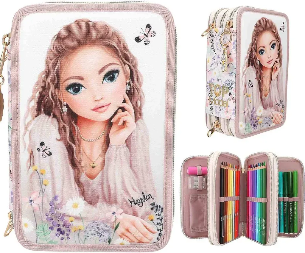 Auf Lager Versand durch AmazonDepesche 13302 TOPModel Summer Feeling - Gefüllte 3-Fach Federtasche in Rosa, mit TOPModel Motiv und Blumen, Federmappe mit Buntstiften, Lineal, Schere UVM.