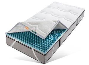 Matratzen Wohnen Schlafzimmer Betten Matratzen - - Der Topper 'fan. Clinisan Punktoflex' von fan bietet viele Vorteile. Die Noppenstruktur des Komfortschaumkerns sorgt für eine optimale Druckentlastung und einen erholsamen Massageeffekt, der Deinen Körper nachts entspannen lässt. Der Topper schützt zudem Deine Matratze. Der hautsympathische Bezug besteht aus 50% Baumwolle und 50% Polyester, versteppt mit bauschiger Klimafaser (100% Polyester), und kann zu einem trockenen Schlafklima beitragen. Der Bezug ist abnehmbar und bei 95°C kochfest waschbar sowie trocknergeeignet. Vier Spanngummis an den Ecken sorgen für sicheren Halt auf der Matratze. Der Topper in überbreite beseitigt die unbequeme Besucherritze. Die Gesamthöhe beträgt 6 cm. Dieser Topper ist auch mit zusätzlicher Einlegeplatte (Gesamthöhe: ca. 8 cm) erhältlich., Top Features: Top-Features: In Deutschland hergestellt (Rohstoffe Endprodukt) - Für dieses Produkt wurden zu 100% in Deutschland gewonnene Rohstoffe sowie Materialien eingesetzt und in Deutschland verarbeitet., Details: Farbbezeichnung: weiß, Schlafposition: Rückenschläfer, Seitenschläfer, Anzahl Liegezonen: individuelle Zonenbildung, Härtegrad: 2, Altersgruppe: Erwachsene, Heranwachsende, Senioren, Material: Baumwolle, Komfortschaum, Polyester, Körpergewicht bis: 80 kg, Körpergewicht von: 0 kg, Ausstattung Funktionen: Befestigung: mit Eckgummis, Eigenschaften Topperbezug: abnehmbar, mit Reißverschluss, Eigenschaften Topper: als Wendetopper nutzbar, ... Ein solider Kaltschaum-Topper, der eine gute Unterstützung bietet und für viele Schlaftypen geeignet ist. ![]() ![]() MeineMatratze24 Topper Kaltschaum H2 140 x 200
