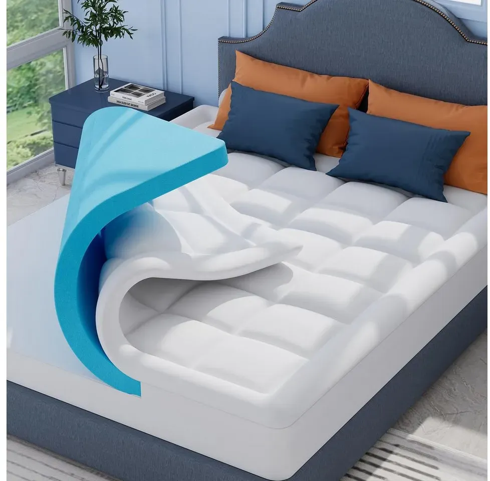 Zustand: Gebraucht - Matratzentopper - BedStory - GY-TP04A1 - - UNTERSTÜTZENDER SCHAUM: Der 2,5cm bequemer Memory Schaum (H3) und 7,5cm stabilere Kaltschaum (H4) des Matratzentoppers ren eine gute Unterstützung. Dies ist eine gute Wahl für diejenigen, denen das Bett zu weich oder zu hart ist. Mehr Komfort für Ihre unbequeme oder alternde Matratze ATMUNGSAKTIVES DESIGN: Der Topper mit Gelpartikeln hat eine hervorragende Temperaturregulierung. Die kleinen Löcher im Gelschaum unseres Toppers sorgen für bessere Atmungsaktivität und ein optimales Schlafklima ANTI-RUTSCH: Die Gurte an den vier Ecken und die rutschfeste Unterseite sorgen dafür, dass der Matratzen Topper sicher mit Ihrem Bett verbunden ist. Der hautfreundliche Matratzenschutzbezug besteht aus bequemem und atmungsaktivem Stoff und er ist abnehmbare SICHERES MATERIAL: BedStory Topper 90x200cm ist von CertiPUR-US und OEKO-TEX zertifiziert, sicher für Menschen und Haustiere. Dieser Gel Topper mit ergonomischem Design ist für Seiten-, Rücken- und Bauchschläfer geeignet VAKUUMVERPACKUNG: Matratzenauflage wird in einer sauberen Vakuumverpackung geliefert. Für ein besseres Erlebnis lassen Sie den Topper vor dem Gebrauch bitte 48-72 Stunden. Wenn Sie weitere Fragen haben, wenden Sie sich an uns bitte - Verkäufer: Yimoli EU im amazon.de Marketplace Dieser Topper mit Kupferionen-Schaumkern ist besonders für Allergiker geeignet und bietet eine gute Höhe für zusätzlichen Komfort. ![]() ![]()