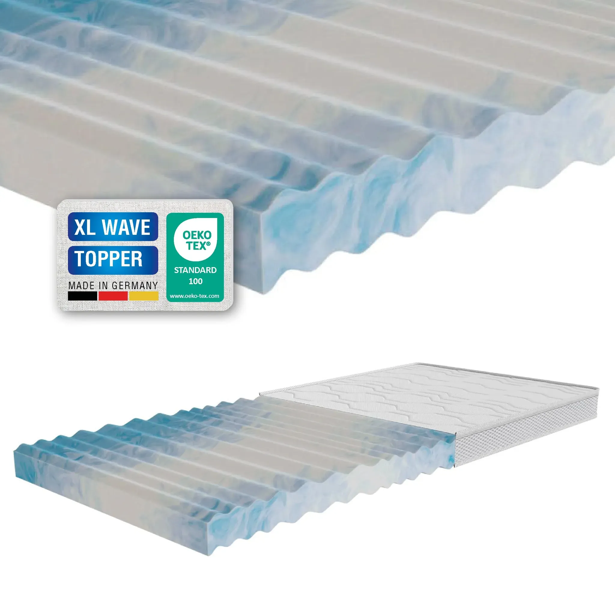 Zustand: Neu - Matratzentopper - nøvera - n01 - EAN: 4262468710037 - 🔄ANPASSBARER KOMFORT - Gel Topper 90x200 mit zwei Härtegraden für individuellen Schlafkomfort. Topper 90x200cm hart oder weich - individuell anpassbar für alle Schlafpositionen und Vorlieben. 🌿NATÜRLICHE BIO-BAUMWOLLE - Unser Bezug der Bettauflage ist aus nachhaltiger Bio-Baumwolle, ultraweich & angenehm und nimmt bis zu 65% des Eigengewichts an Feuchtigkeit auf. œ ERGONOMISCHE 7-ZONEN - Die 7-Zonen des Gelschaum Topper 90x200cm passen sich an Ihre Körperkonturen an & sorgen mit dem Kaltschaum Bett Topper 90x200 für eine perfekte Druckentlastung & Stütze. 💦OPTIMALE LUFTZIRKULATION - Das 3D Klimaband des Geltopper 90x200cm rt eine ideale Belüftung & Feuchtigkeitsregulierung. Perfekt als kühlende Matratzenauflage 90x200cm in warmen Nächten. ðŸ¤ZERTIFIZIERTE PREMIUM QUALITÄT - Unser Memory Foam Topper besteht ausschließlich aus hochwertigen Materialien und ist OEKO-TEX, Certipur & GOTS zertifiziert - schadstofffrei & umweltfreundlich. - Verkäufer: nøvera im amazon.de Marketplace Dieser 7-Zonen-Wellenschnitt-Topper bietet eine gute Körperanpassung und ist in verschiedenen Härtegraden erhältlich. ![]() ![]() ARBD Topper XL Wave 10cm, Matratzenauflage - 7-Zonen-Wellenschnitt - H2, H3, H4 - alle Größen für alle Bettarten geeignet (H2 - weich, 90 x 200 cm)