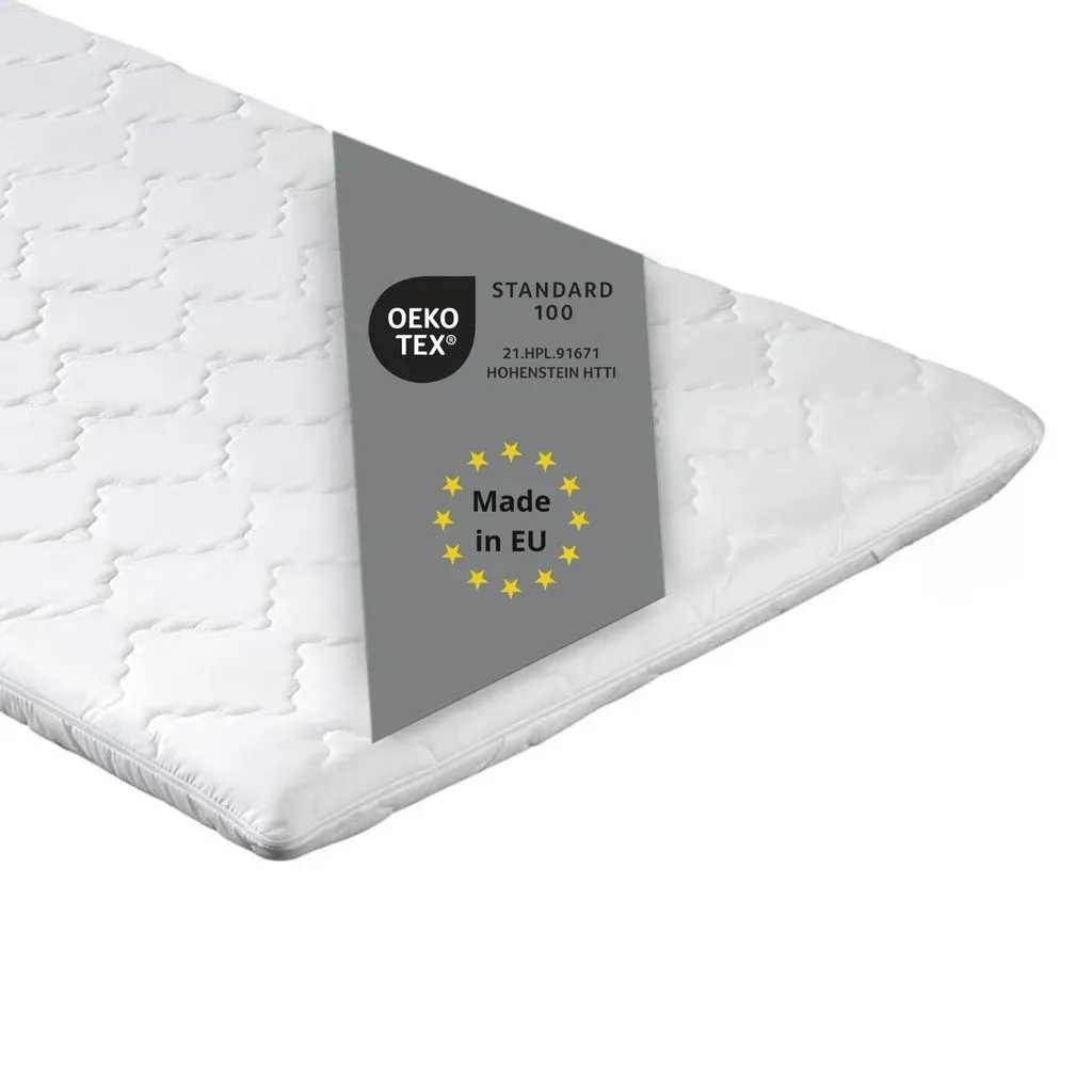 Kategorie: Matratzenschoner - sleepling - GTIN:4251342788392 - liebling Viscoschaum Topper 90 x 200 cm Orthopädischer Schlafkomfort mit Memory-EffektDer liebling Viscoschaum Topper in der Größe 90 x 200 cm bietet optimale Druckentlastung und punktgenaue Körperanpassung ideal für ein verbessertes Liegegefühl und mehr Schlafkomfort. Der viscoelastische Schaum passt sich individuell an die Körperform an und sorgt für orthopädisch unterstützenden Schlaf.Material & AufbauBezug: Der Bezug besteht aus hochwertiger Mikrofaser (100% Polyester) und ist beidseitig mit atmungsaktiver Klimafaser versteppt. Das sorgt für ein angenehm weiches Liegegefühl und gute Luftzirkulation.Kern: Der ca. 5 cm dicke Kern besteht aus viscoelastischem Schaumstoff mit hohem Raumgewicht für langlebige Formstabilität und punktgenaue Druckentlastung. Die Gesamthöhe des Toppers liegt bei ca. 5 6 cm.PflegehinweiseDer Bezug ist über einen Reißverschluss abnehmbar und bei bis zu 60 C waschbar. Er kann außerdem schonend im Trockner (1 Punkt) getrocknet werden für hygienischen und pflegeleichten Alltag.Anwendung & KomfortViscoschaum reagiert auf Körperwärme und passt sich flexibel an jede Schlafposition an. Der Memory-Effekt unterstützt Schultern, Rücken, Becken und Gelenke gezielt und gleichmäßig. Ideal für Menschen mit hohem Komfortanspruch oder orthopädischen Bedürfnissen.Produktvorteile auf einen BlickGröße: 90 x 200 cm ideal für Einzelbetten oder als ergänzende KomfortauflageKern: 5 cm viscoelastischer ... Der Gentle North Topper bietet mit 79.99 Euro eine Kombination aus Gel-Memory- und Komfortschicht für Härtegrad H2/H3 und ist schadstoffgeprüft. ![]() ![]() Gentle North Topper 90x200 Matratzentopper 7cm hoch H2/H3 - Gel-Memory- und Komfortschicht - diverse Größen - schadstoff für Stoffe, Fäden, Schaum etc.