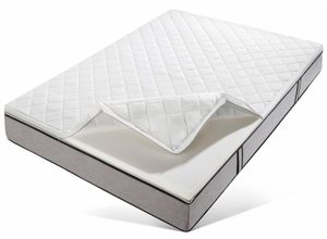 übergroße Matratzen Wohnen Schlafzimmer Betten Matratzen - - Motto: 'Aus alt wird neu' - Topper-Matratzenauflage ohne Besucherritze für Ihr Doppelbett - hygienisch, kuschelig und praktisch. Dieser ca. 7 cm hohe Komfortschau-Topper 'Komfort Plus' aus dem Hause BeCo hat einen punktelastischen, formstabilen und langlebigen Komfortschaum-Kern. Der Komfortschaum sorgt beidseitig für anschmiegsamen Liegekomfort und eine perfekte Druckentlastung zum Drehen und Wenden. Der Topper-Bezug ist pflegeleicht, hygienisch und sehr atmungsaktiv. Der hochelastische und anschmiegsame Doppeltuch-Bezug ist beidseitig mit einer bauschigen Klimafaser versteppt. Abnehmbar und bis 60 °C waschbar. Material: Kern: Komfortschaum. Gesamthöhe: ca. 7 cm. Kernhöhe: ca. 5 cm. Bezug: Doppeltuchbezug (100% Polyester) versteppt mit bauschiger Klimafaser (100% Polyester). Artikeldetails: Raumgewicht: 28. Höhe (cm): ca. 7 cm. Farbe: weiß. Abnehmbarer Bezug: ja, durch Reißverschluss. Hausstauballergiker geeignet: ja. Pflegehinweise: Bezug bis 60 °C maschinenwaschbar., Details: Farbbezeichnung: weiß, Material: Komfortschaum, Ausstattung Funktionen: Eigenschaften Topperbezug: abnehmbar, atmungsaktiv, mit Reißverschluss, teilbar, Allergikerinformation: Hausstauballergiker geeignet, Maße Gewicht: Höhe: 7 cm, Breite: 200 cm, Länge: 200 cm, Bezug: Pflegehinweise: 60°C Maschinenwäsche, Materialzusammensetzung: Obermaterial: 100% Polyester, Art Bezug: Doppeltuch, Klimafaser, Kernaufbau: Kernaufbau: Komfortschaum (ca. 5 ... Der BODYGUARD® Topper ist eine beliebte Wahl für alle, die eine feste und unterstützende Matratzenauflage suchen. ![]() Matratzentopper bett1 BODYGUARD® Topper, 200x200