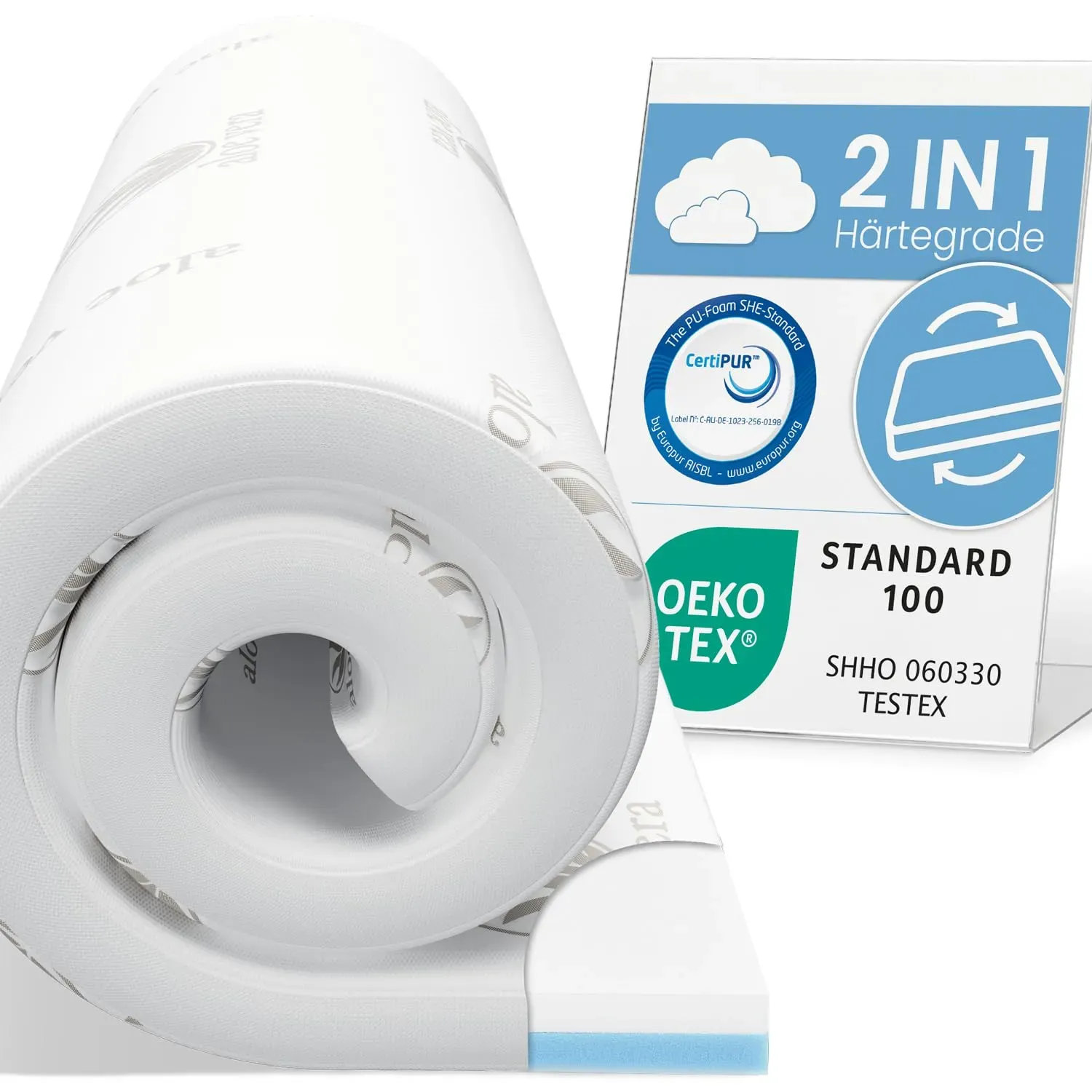2 Händlerangebote bei billiger.de - Kategorie: Matratzenschoner - Komfortec - NEUES TECNOLOGIE & GELL: Dank des atmungsaktiven Gel-Memory-Schaums, der mit der neuesten Wärmeisolationstechnologie hergestellt wird, können Sie mit der Komfortec-Matratzenauflage ruhig schlafen und das Temperaturgleichgewicht aufrechterhalten. Visco Memory Schaum mit Gel Matratzentopper passen sich Ihren Druckpunkten an, halten Ihre Wirbelsäule aufrecht, als ob Sie stehen würden, und verursachen keine Rückenschmerzen. MATERIAL: Der Kern der Komfortec Matratzen Topper besteht aus 7,5 cm Visco Memory Foam mit gell. Der Bezug besteht aus 35% Visco mit atmungsaktivem Aloe Vera. Es hält Ihre Körpertemperatur im Gleichgewicht. Auf diese Weise wird verhindert, dass es Ihnen nachts zu heiß oder zu kalt wird. RUTSCHFEST: Dank der Anti-Rutsch-Punkte an der Unterseite ist es für jeden geeignet, auch für diejenigen, die sich im Schlaf bewegen. Es verfügt über verstellbare Gummibänder an den 4 Ecken, passend für jede Matratzenstärke. HYGIENISCH: Für Allergiker geeignet, der atmungsaktive Aloe Vera-Bezug lässt sich dank U-Reißverschluss leicht abnehmen und ist bis 40 waschbar. Benutzen Sie keine Bleichmittel und kein Bügeln. GEPRüFTE QUALITAT: Komfortec Orthopädisches Topper ist nach den strengen Anforderungen des OEKO-TEX 100 Standards getestet und zertifiziert. OEKO-TEX NR: 02.T.2775. Allergiker können es problemlos verwenden. - GTIN:4255684900122 Ein ELONEO Viskoelastischer Matratzen-Topper mit Wendefunktion und zwei Härtegraden, der Flexibilität bietet. ![]() ![]() ELONEO Viskoelastischer Matratzen-Topper 90 x 200 cm, MemoryFoam Komfort Matratzenauflage, Viscoauflage, Wendefunktion mit 2 Härtegraden, inkl. Aloe Vera Bezug