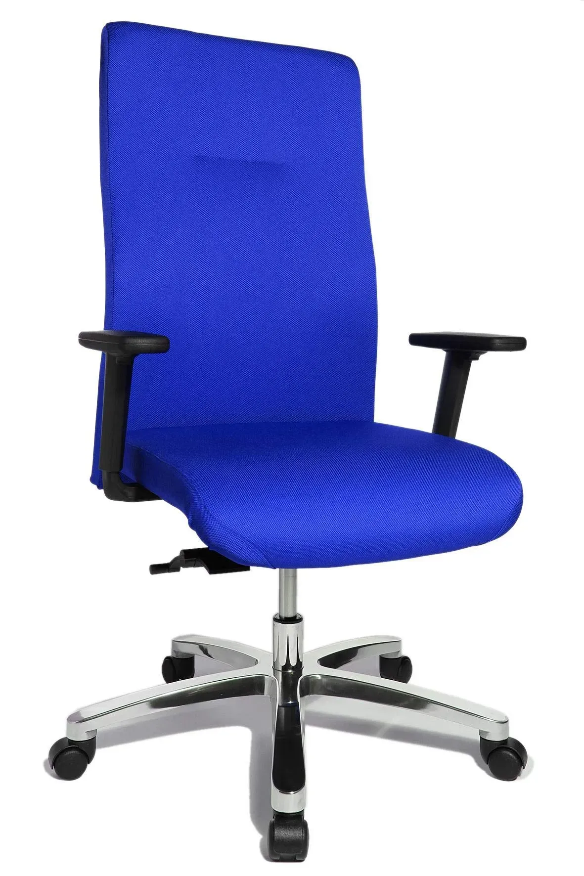 Drehstühle Wohnen Arbeiten Schreibtischstühle - - Der Topstar XXL Bürostuhl Big Star 20, BT290T W50 Stoff schwarz, Gestell alu ist der Richtige für stundenlanges SitzenIhre neue Sitzgelegenheit sollte unbedingt Ihren Bedürfnissen entsprechen, damit sich auch lange Bürotage angenehm anfühlen - werfen Sie daher unbedingt einen Blick auf den Topstar XXL Bürostuhl Big Star 20, BT290T W50 Stoff schwarz, Gestell alu. Perfekt ausgestattet mit Rückenlehne und ArmlehnenDiese Sitzmöglichkeit verfügt über eine Rückenlehne aus angenehmem Polstermaterial. Dank der verstellbaren Neigung der Rückenlehne, können Sie immer eine bequeme Position einnehmen. Die Armlehnen sorgen für weiteren Komfort und unterstützen ein bequemes Sitzen. Die Arme werden entlastet und Verspannungen kann vorgebeugt werden. Die Armlehnen sind höhenverstellbar.Mit Synchron-MechanikDiese Sitzmöglichkeit ist mit der Synchron-Mechanik ausgestattet. Das bedeutet, dass die Sitzfläche und die Rückenlehne synchron arbeiten und sich der Körperhaltung anpassen.So lange können Sie auf dem Topstar XXL Bürostuhl Big Star 20, BT290T W50 Stoff schwarz, Gestell alu Platz nehmenDer vordere Bereich der Sitzfläche ist leicht nach vorne gewölbt, wodurch eine tiefe Muldenform entsteht. Auch nach längerem Sitzen bietet der Muldensitz hohen Komfort. Nach Angaben des Herstellers kann man auf dem Topstar XXL Bürostuhl Big Star 20, BT290T W50 Stoff schwarz, Gestell alu ohne Probleme bequem uneingeschränkt lange sitzen.Diese Werte ... Dieser blaue Stuhl ist eine gute Option für Kunden, die eine frische Farbe wünschen und dabei auf ein gutes Preis-Leistungs-Verhältnis achten. ![]() ![]() TOPSTAR Big Star 20 blau