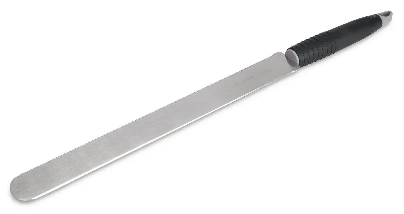 Auf Lager Versand durch AmazonWenco Tortenmesser Edelstahl Konditormesser ? Zweiseitig schneidendes Bäckermesser für präzises Schneiden und Glasieren, 20 cm Schneide, 33,5 cm Gesamtlänge, Schwarz Silber