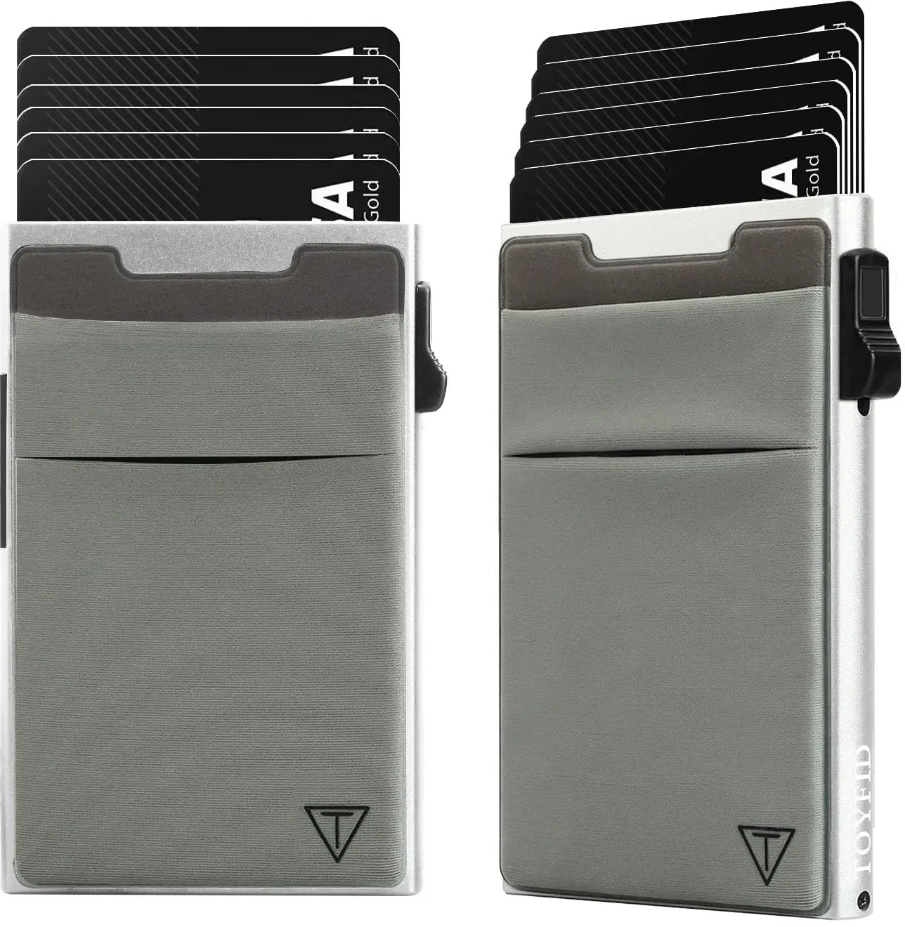 Kategorie: Portemonnaies - toyfid - Eliminate Bulky Heavy Wallet - Upgrade Pop up metal slim wallets for men, Large capacity can hold 1-7 cards slot , Extra elestic money pocket support some cash, coins or 3-4 cards.the actual capacity depends on the card thickness, Don't Worry About Finding The Card - This metal slim automatic minimalist wallet uses an Upgrade sliding button to prevent your cards from falling. It won't fall out even if there's one card! One finger sliding button and it is easy to pick up the card you need. , don't need to spend a long time finding the card you need. Prevent Credit Card Theft - Toyfid anti theft aluminum slim credit cards wallet mades by RFID blocking technology which ensures the protection against fraud. Stay safe and secure, this wallet for men slim minimalist effectively blocks 13.56 mhz frequencies (debit/credit cards), even from the most powerful RFID scanners and Chip Readers. Extra DIY Phone Card Wallet & Ultralight Material x - Extra elestic pocket can DIY to be a Phone Card Holder ,support 3-4 cards and some cash,coins or earphone. Durable metal wallet made of anti-Scratch 6061-T6 Aviation aluminum and Frosted surface.thin wallet fits the normal credit card size(3.81*2.36*0.39in). PERFECT GIFT: Aluminum Slim Metal Wallet is a Great Gift for Boy Friend, Brother, Son, Husband, Dad, or your Male Friends on Christmas, Birthdays, Anniversaries, and Father s Day. - 18,99 Euro bei Amazon Marketplace Luggage - gefunden von billiger.de Dieses Smart Wallet für 19.97 Euro bietet Platz für 12 Karten und Papiergeld, RFID-Blockierung und schnellen Zugriff durch eine Auswurftaste. ![]() ![]() TOYFID Smart Wallet für Herren 12 Karten Papiergeld Organizer RFID Blockierende Kartenhülle,Ultradünner Metall Kartenhalter mit Auswurftaste Schneller Zugriff auf Bank Kredit Karten,Aluminium,Blau