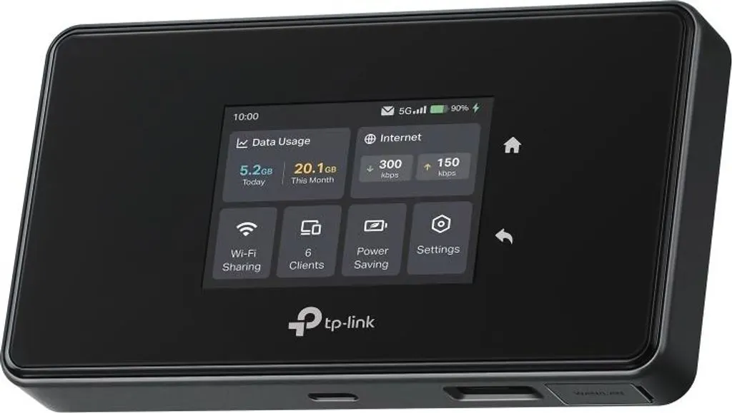 Auf Lager Versand durch AmazonTP-Link M8550 5G LTE Mobiler WLAN Router ? Bis zu 3,4 Gbit/s, Tri-Band Wi-Fi 6E, Nano-SIM-Karten Slot, Gigabit WAN/LAN, 4680 mAh Akku, Touchscreen, Wireguard, bis zu 32 Geräte
