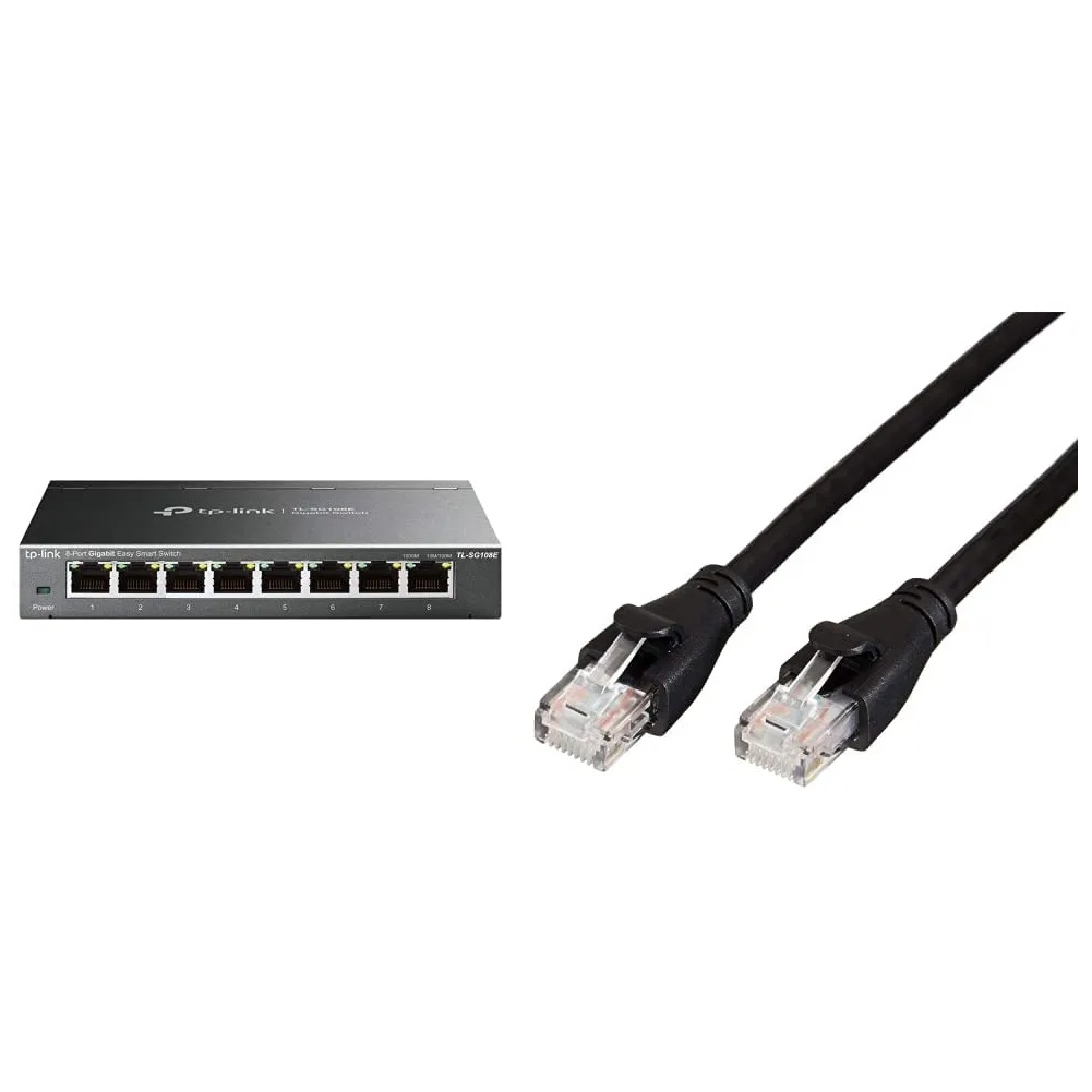 keine Angabe (Amazon Prime) Auf Lager Versand durch AmazonTP-Link TL-SG108E 8-Port Gigabit Easy Smart/Unmanaged PRO Switch (Plug&Play, Gigabit Ports, Metallgehäuse, VLAN, QoS, Easy Smart Management Software) & Amazon Basics Ethernet-Netzwerkkabel, RJ45