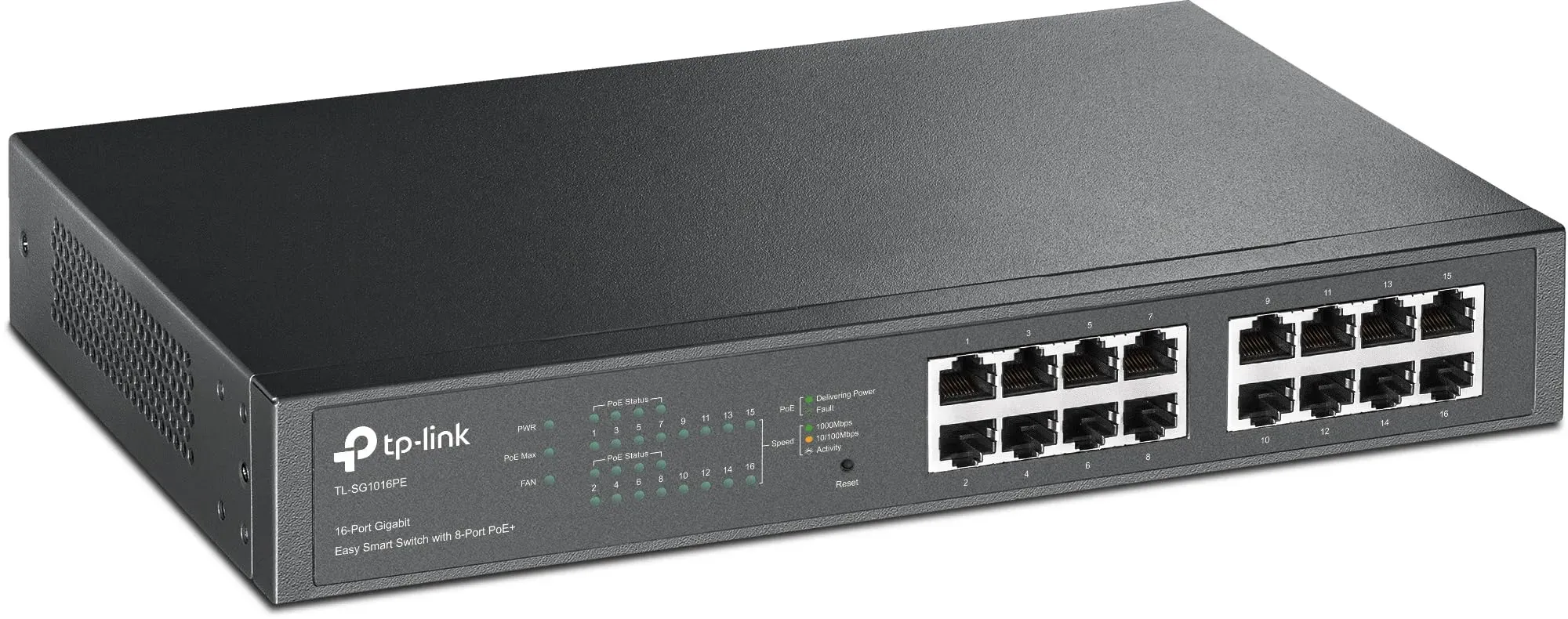 Auf Lager, sofort versandfertig Lieferzeit 1-2 WerktageTP-LINK Easy-Smart TL-SG1016PE 16-Port-Gigabit-Switch mit 8 PoE+-Ports