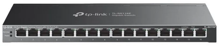 Auf Lager Versand durch AmazonTP-Link TL-SG116P 16-Port Gigabit PoE Switch(120 Watt, IEEE-802.3af/at PoE, lüfterlos, Plug-and-Play, Robustes Metallgehäuse) Schwarz
