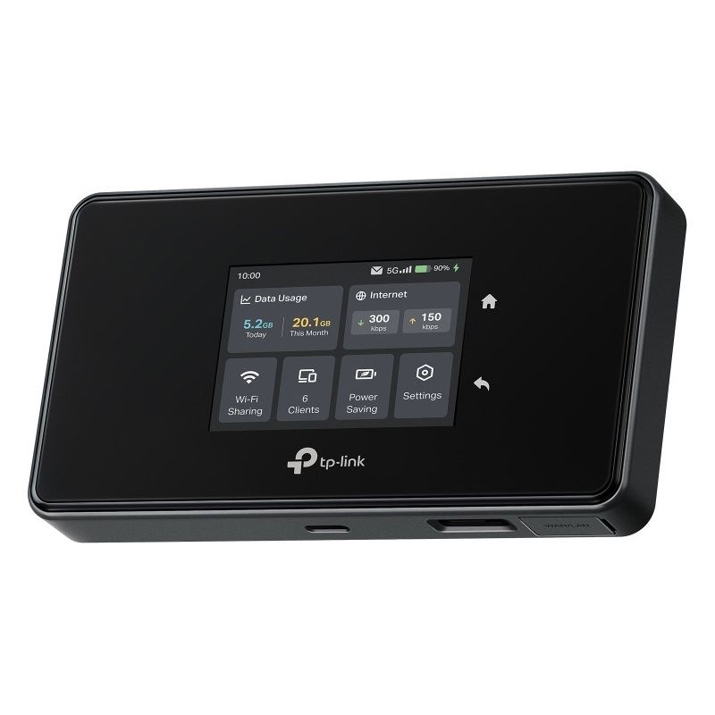 Kategorie: Router - TP-Link - GTIN:1210002602938 - überlegenes 5G - Bis zu 3.4 Gbps Downloadgeschwindigkeit Leistungsstarkes Wi-Fi 6E - Tri-Band AXE3600 Netzwerk Gigabit WAN/LAN-Anschluss - Bietet eine stabile und vielseitige kabelgebundene Verbindung Touchscreen - Einfache Verwaltung mit nur einer Berührung VPN-Verschlüsselung - Sicherer Zugriff auf entfernte Server Einfache Netzwerkfreigabe - Unterstützt bis zu 32 Geräte gleichzeitig - 399,99 Euro bei Saturn Online Shop - gefunden von billiger.de ![]() TP-LINK M8550 Mobiler 5G Router 3,4 Gbit/s