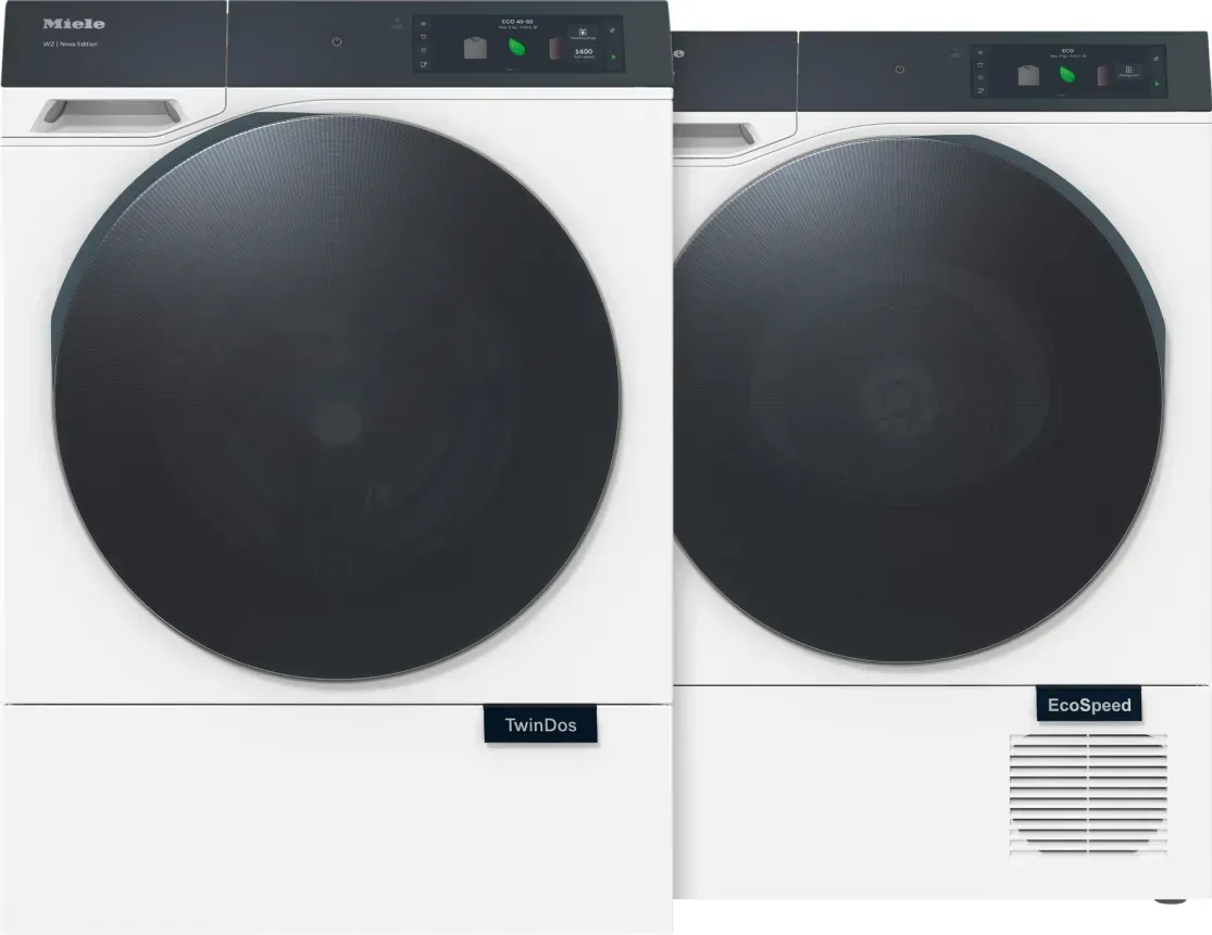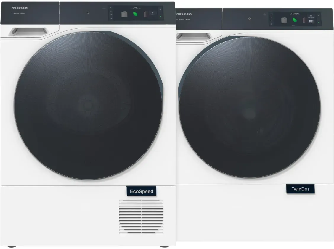 EEK: B - Kategorie: Wärmepumpentrockner - Miele - GTIN:4002516859963 - Bauform * Säulenfähig * Side-by-Side * Unterschiebbar * Unterbaufähig * Türanschlag: links Bauart * Produktmarke: T2 Nova Edition * Wärmepumpentrockner Design * Gerätefarbe: Lotosweiß * Tür- und Blendendesign: BlackEffect * Blendenausführung: schräg * Bedienungsart: Touch-Bedienung * Display: M Touch Pro * AmbientLight * MotionReact Trocknerergebnis * Punktgenaue Trocknung PerfectDry * Duftsystem FragranceDos * Dampfsystem SteamCare * PowerDry * Intelligente Trommelreversierung * HygieneDry Wäscheschonung * SilenceDrum * Beladung in kg: 9 Bedienkomfort * Vernetzung mit Miele@home * Wash2Dry * Dampfsystem SteamCare * Startvorwahl bis zu 24h * Restzeitanzeige * Tageszeitanzeige * Programmablauf-Anzeige * Info-Texte * Trommelbeleuchtung: LED * MultiLingua * Akustikpaket für niedrigste Geräuschwerte * Kondensatbehälter * Integrierte Kondenswasserableitung * AddLoad * ComfortOpen - 2299,00 Euro bei holzleitner.de - gefunden von billiger.de ![]() ![]() Miele WQ 1000 WPS Nova + Miele TQ 1000 WP Nova