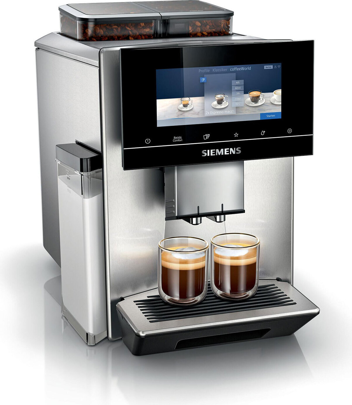 Zustand: Neu - Kaffeevollautomaten - SIEMENS Siemens - TQ907D03 - EAN: 4242003896730 - Kontrolliere alle relevanten Brühparameter für nuancierten Kaffeegenuss - baristaMode Ein brilliantes, hochauflösendes 6,8€ Full-Touch-Display mit einzigartigem Menü - iSelect Display Deutliche Geräuschreduzierung für eine angenehm leise Kaffeezubereitung - superSilent Zwei Bohnenbehälter und zwei separate, elektronisch justierbare Mahlwerke - dualBean System Die perfekten Brüheinstellungen für deine Lieblingskaffeebohnen - beanIdent System - 2 Händler im amazon.de Marketplace ![]() ![]() Siemens Kaffeevollautomat EQ900, großes farbiges TFT-Display, 2 Bohnenbehälter, 36 Heiß- und Kaltgetränke, Cold Brew, super leise, Doppeltassenfunktion, Steuerung per App, Edelstahl, TQ907D03