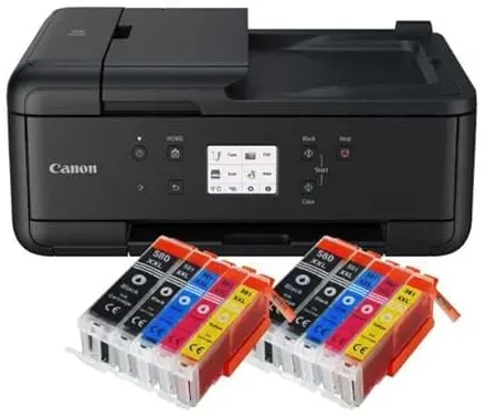 Verfügbarkeit: Auf Lager - Kategorie: Multifunktionsdrucker - youprint - GTIN:4255701600448 - Multifunktionsdrucker TR7650 OHNE ORIGINALPATRONEN, dafür mit 10 kompatiblen YouPrint Patronen PGI-580/CLI-581 XXL. Hochwertige Tinte der Marke YouPrint für hervorragende Druckqualität und ein gestochen scharfes Druckbild. Funktionen: Kabellos Drucken von Smartphone und Tablet, Druckauflösung: bis zu 4.800 x 1.200 dpi. Randloser Druck und automatischer beidseitiger Druck (Duplex). Druckgeschwindigkeit SW ca. 15 ISO-Seiten/Minute, Farbe ca. 10 ISO-Seiten/Minute. - 164,90 Euro bei Amazon Marketplace PC Notebook - gefunden von billiger.de Dieses Angebot hebt die 5 separaten Tintenpatronen hervor, was auf eine gute Druckqualität und effizienten Tintenverbrauch schließen lässt. ![]() ![]() Canon PIXMA TR7650 Multifunktionsdrucker, (WLAN (Wi-Fi), Wi-Fi Direct, 4in1 Tintenstrahl-Multifunktionsgerät mit 5 separaten Tintenpatronen) schwarz