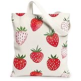 keine Angabe Gewöhnlich versandfertig in 2 bis 3 TagenErdbeer-Leinen-Tragetaschen, Obst-Design, wiederverwendbare Einkaufstaschen, Sommer, leicht, waschbar, Schultergurt für Reisen, Strand, Weiss/opulenter Garten, 13x15 Inch