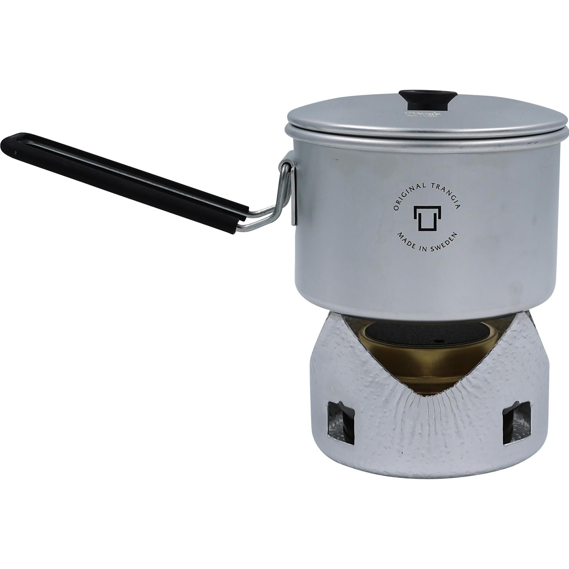 Trangia - EAN: 7315081005008 - Der Micro Original von Trangia wird mit einem praktischen kleinen Topf geliefert. Sie können Wasser für Ihren Gefrierbeutel zum Kochen bringen und währenddessen einen weiteren Topf für Ihre Lieblings-Heißgetränke. Nach Gebrauch lassen sich Brenner und Topfständer im Topf verstauen, dessen Griff sich zum Transport auf den Deckel drehen lässt. Der traditionelle Spiritusbrenner ist extrem leise und zuverlässig: kein Druckaufbau, keine Dichtungen, keine engen Düsen, die leicht verstopfen, nur der Spiritus brennt frei, und wenn sich der Brennerkörper erhitzt, beginnt er, Flammen auch aus den Perforationen an der Oberseite auszustoßen. - Normaler Trangia -Spiritusbrenner, komplett mit tropfsicherem Deckel und Flammenregulierungs-/Dämpfungskappe Max. Leistung 1000 Watt - Aluminiumtopf mit Griff, mit Volumenmarkierungen auf der Innenseite - Hergestellt in Schweden Denken Sie daran, den Brenner vollständig abkühlen zu lassen, bevor Sie den Deckel wieder aufsetzen ein heißer Brenner kann den O-Ring schmelzen. Zwar sind diese als Ersatzteile erhältlich, aber etwas Geduld wird mit einem leckagefreien Erlebnis belohnt. Hinweis! Obwohl die Produkte von Trangia recht gut miteinander kompatibel sind, ist die Brennerbasis in diesem Set nicht mit Gas- oder Mehrstoffbrennern kompatibel. Schauen Sie sich unsere große Auswahl an [Trangia -Ersatzteilen, Zubehör und Kochern](/?q=trangia&sort=lowest); an! - bei scandinavianoutdoor.de - aus Yadore Produktdaten ![]() ![]() Trangia Micro Original - Minikocher