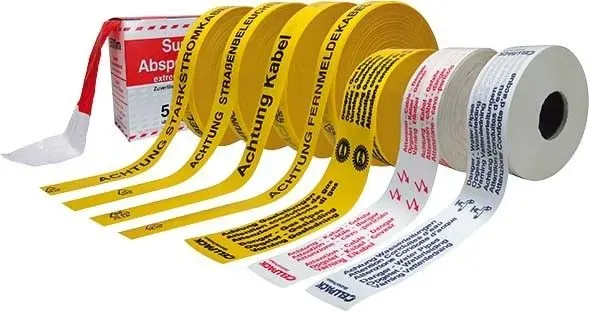 Die meisten Trassenwarnbänder bestehen aus LDPE (Low Density Polyethylen) oder PE-Verbundfolie. Diese Materialien sind kälte- und alterungsbeständig und eignen sich für den Einsatz im Erdreich. Die klassische Farbkombination ist gelb mit schwarzem Aufdruck (z. B. 'Achtung Kabel', 'Achtung Gasleitung'). Die Farbe dient der schnellen Erkennung bei Erdarbeiten. Achten Sie auf die DIN EN 12613 oder FTZ-Norm 548464 TV1. Diese Normen garantieren, dass das Band den Anforderungen für den Einsatz im Erdreich entspricht. Typische Rollenlängen sind 100 m oder 250 m, Breiten meist 40 mm oder 100 mm. Die Länge hängt von der zu markierenden Strecke ab. Einige Bänder sind mit Edelstahldrähten versehen, sodass sie ortbar sind (z. B. für Kabel oder Leitungen, die später lokalisiert werden müssen). ? Beliebte Marken und Modelle