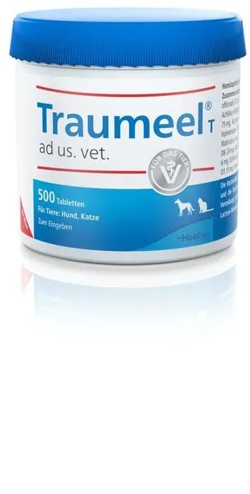 0,12 /St - Kategorie: Tiergesundheit - Heel - GTIN:4047642008588 - PZN:04055647 - Traumeel für Hunde und Katzen natürliches Mittel zur Unterstützung der körpereigenen RegenerationTraumeel ist ein registriertes homöopathisches Tierarzneimittel, das speziell für Hunde und Katzen entwickelt wurde. Es besteht aus einer ausgewählten Mischung pflanzlicher und mineralischer Inhaltsstoffe, die in homöopathischer Potenzierung aufbereitet wurden. Der Ansatz des Präparats liegt im Multikomponenten- und Multitarget-Prinzip: Mehrere Wirkstoffe arbeiten simultan an verschiedenen biologischen Prozessen, wodurch sie die natürlichen Regenerationsabläufe des Körpers unterstützen können. Diese sanfte Herangehensweise ist gut verträglich und lässt sich hervorragend mit anderen Tierarzneimitteln kombinieren.Produziert wird Traumeel von der Marke Hel Vet in Deutschland nach strengen wissenschaftlichen und pharmazeutischen Qualitätsstandards. Diese Standards ren geprüfte Reinheit, gleichbleibende Qualität und die Expertise des Herstellers Heel, der seit Jahrzehnten natürliche Tierarzneimittel entwickelt.Traumeel Hund und Katze AnwendungsgebieteTraumeel Hund ist Teil der Heel Vet Tierarzneimittelreihe, die sich auf natürliche, homöopathische Präparate für Tiere konzentriert. Diese Produkte sind so gestaltet, dass sie das körpereigene Regenerationspotenzial fördern sanft, verträglich und auf die speziellen Bedürfnisse von Tieren abgestimmt. Das Präparat trägt den Zusatz ad us. vet. (lateinisch: ... Dieses Angebot ist ein gutes Preis-Leistungs-Verhältnis für Traumeel T Tabletten für Hunde-/Katzen 500 stk von einem bekannten Anbieter. ![]() ![]() Traumeel T Tabletten für Hunde-/Katzen 500 stk