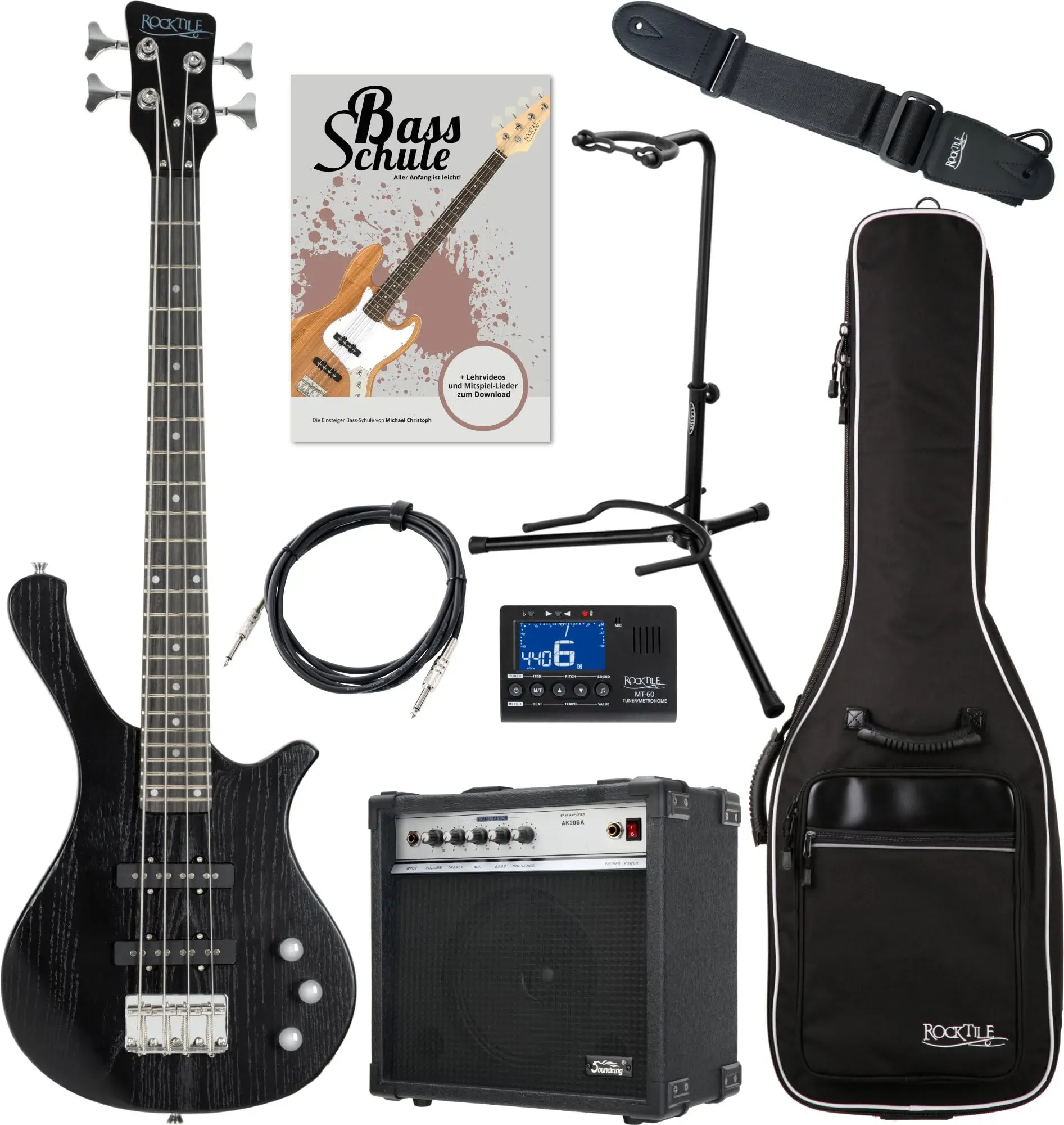 Kategorie: Sonstige Zupfinstrumente - BatKing - Batking Mini-E-Bassgitarren aus Eschenholz sorgen für einen hellen und stabilen Klang. Der starke, 5-teilige Mahagoni-Hals mit lila Herz-Baum-Griffbrett ist sehr hart und nicht leicht zu formen. Hochwertiger Reise-Mini-Bass mit EQ unter der Brücke, der Ihnen helfen kann, die Lautstärke und die Stimmung einzustellen. Die Punkt- und Positionslinie an der Seite des Griffbretts kann Darstellern (insbesondere Anfängern) helfen, den Bund schnell zu lokalisieren. Das Gewicht des elektrischen Ubass beträgt 1,9 kg; die Länge der Mutter beträgt 42 mm; und die Skalenlänge beträgt 436 mm. Der Ubass mit Halsstab kann den Hals anpassen und den Hals gerade halten. Mini-Ubass wird mit kostenloser gepolsterter Gigbag und Traversen geliefert, einfach zu transportieren. - 219,89 Euro bei Amazon Marketplace CE - gefunden von billiger.de Dieses Rocktile TB-4 MBK Traveler E-Bass Super Set bietet ein komplettes Paket mit Verstärker und Zubehör für den sofortigen Start. ![]() ![]() Rocktile TB-4 MBK Traveler E-Bass - 4-saitiger E-Bass im Reiseformat - 2 Single Coil-Tonabnehmer - Inklusive Amp, Gigbag, Tuner, Gurt, Ständer, Kabel und Schule - Matte Black