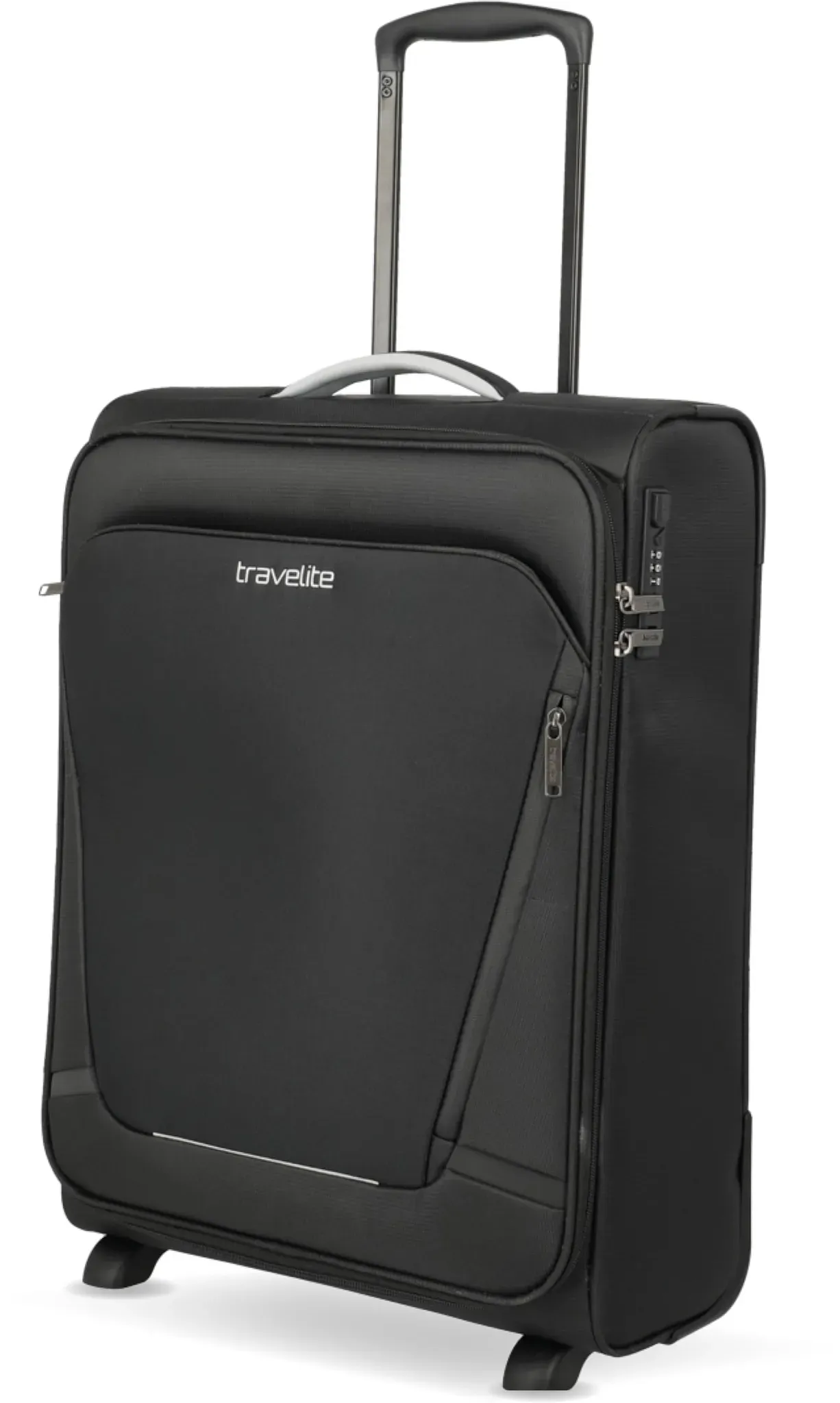22 Händlerangebote bei billiger.de - Kategorie: Trolleys - Travelite - CHIOS: Zeitlos, praktisch, funktional und so schön leicht das perfekte Weichgepäck für die Familie AUSSTATTUNG: Mit vier Doppelrollen, einem höhenverstellbaren Leichtmetallgestänge, dem zusätzlichen Kantenschutz und einer praktischen Aufsteckfunktion ist der kleine Rollkoffer optimal ausgestattet INNENRAUM: Die große Vortasche sowie die durchdachte Inneneinteilung mit einstellbaren Packgurten und Trennwand bieten viel Stauraum LIEFERUMFANG: 1 x Reisekoffer Handgepäck Bordtrolley; Maße: 55 x 39 x 20 cm erfüllt IATA Norm; Volumen 34 Liter; Gewicht 2,4 kg; Material Polyester; Farbe Schwarz; mit Zahlenschloss TRAVELITE: Das Familienunternehmen mit Sitz in Hamburg versorgt schon seit 1949 Reisende mit leichtem, robustem und funktionalem Reise- und Freizeitgepäck - GTIN:4027002083851 Dieser Travelite Bordtrolley ist mit 58,95 Euro eine beliebte und preiswerte Option für Handgepäck mit Schloss. ![]() ![]() Travelite Bordtrolley Handgepäck Koffer leicht, 2 Rollen, Cabin, Weichgepäck Trolley klein mit Schloss, 52 cm, 39 Liter