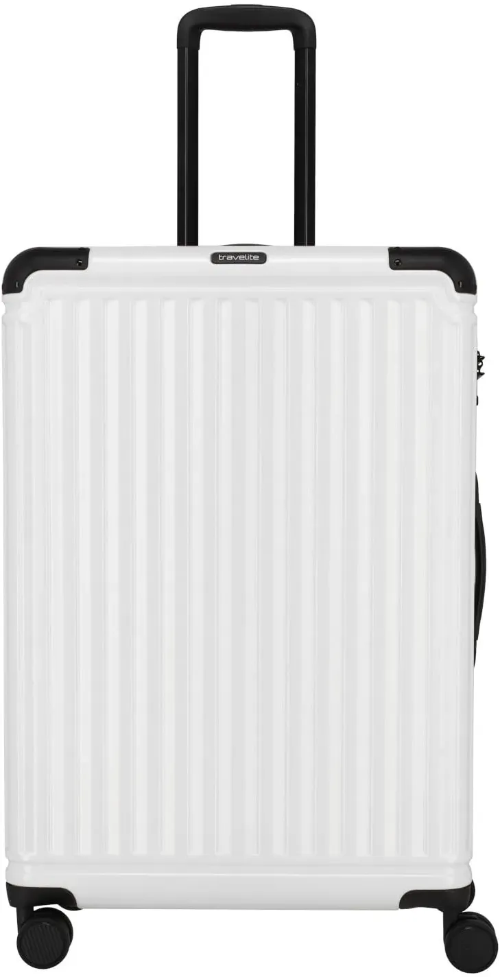 Kategorie: Trolleys - Travelite - GTIN:4027002081239 - travelite Cruise, 67cm Hartschalen TrolleyFür Reisen von bis zu einer Woche geeignet - nicht als Handgepäck verwendbartravelite Serie: CruiseWegfahren. Abschalten. Die Welt entdecken. Herrlich. Das Reisen bringt so viel Leichtigkeit in dein Leben. Und die Cruisee Trolleys der Größe L und M unterstreichen dein unbeschwertes Urlaubsfeeling mit der dazu passenden Farbe. Traumhaft unkompliziert kommt auch das geradlinige Design daher. Und die cleveren Features sorgen für viel Reisekomfort. Kann also losgehen mit dem Wegträumen!Mit stylisch und dennoch einfachem Look überzeugen die aus reißfestem Polyester gefertigten Mit 4-Doppelrollen ausgestattet sind sie in den Größen L, M und S verfügbar. Das integrierte TSA-Sicherheitsschloss (Nur M+L) sorgt zudem für die Sicherheit des Gepäcks. Die vielen Außentaschen sowie der strukturiert aufgebaute Innenraum mit Packgurten und separatem Wäschefach sorgen dafür, dass beim Packen keine Unordnung entsteht.Ausstattunginnen ist der Koffer mit Stoff ausgekleidetdie Teleskopstange ist mehrfach höhenverstellbarseperates Wäschefachzum Tragen hat der Koffer oben einen bequemen Griffgeschlossen wird der Koffer mit einem umlaufendem Reißverschlussein großes Fach bietet ausreichend Platz für alle Sachenein Gurt im Hauptfach Sichern den Inhalt4 Laufruhige um 360 Grad drehbare RollenSchutzeckenalle Koffer dieser Serie sind platzsparend ineinander stapelbarSicherheitTSA LOCK ... Dieser große Trolley in Weiß ist mit 84.90 Euro eine geräumige und klassische Option für längere Reisen. ![]() ![]() Travelite CRUISE Trolley L (77 cm) mit 4 Rollen Weiss [30] - L