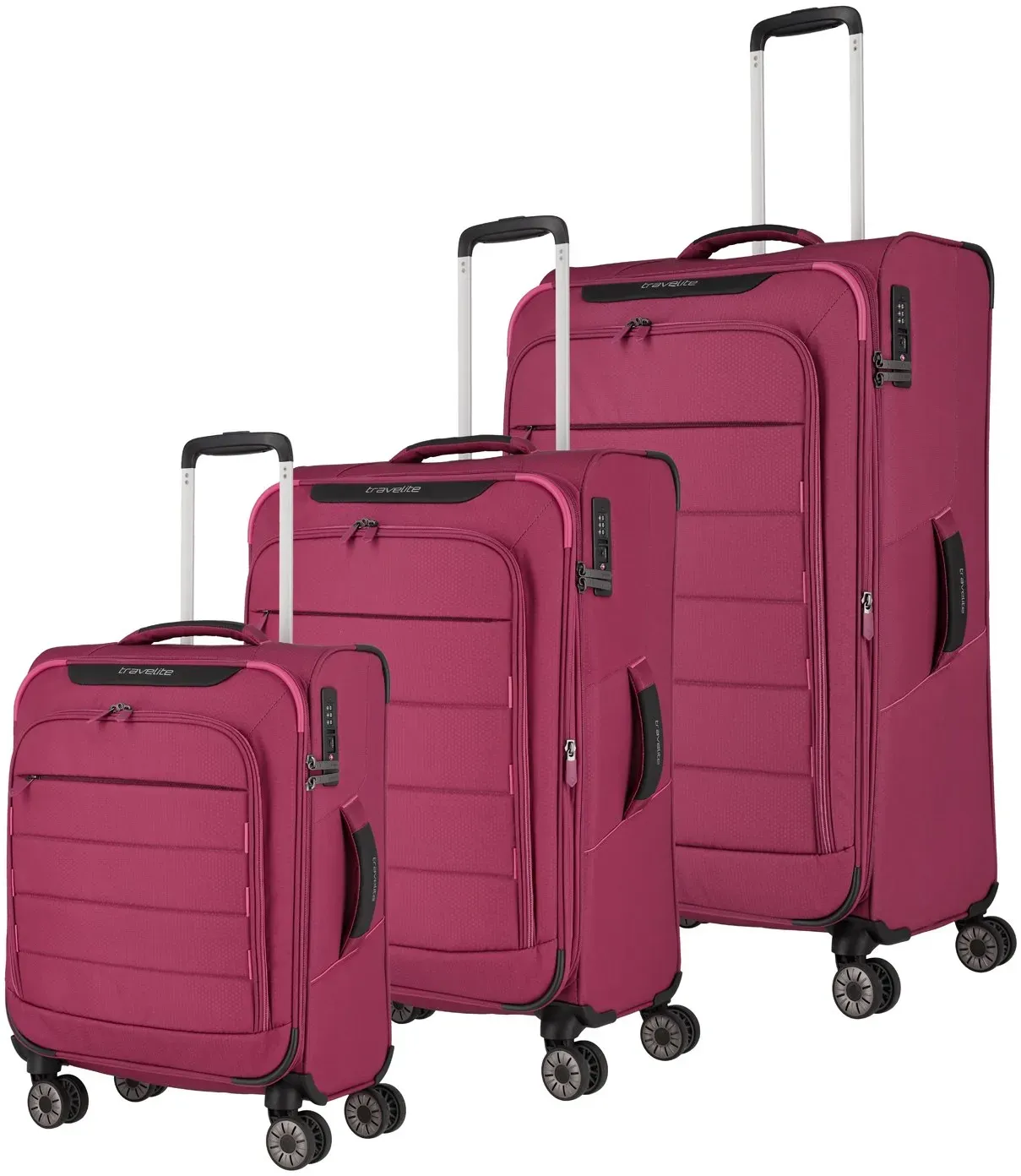 Verfügbarkeit: 1-2 Werktage - Kategorie: Koffer-Sets - Travelite - GTIN:4027002078178 - Dieses Set mit drei travelite Trolleys ist für lange Urlaube oder kurze Geschäftsreisen geeignet. Im großen Hauptfach kommt jeweils viel Kleidung unter. Zudem ist das Design rundum gelungen und sportlich. Mit den Trolleys verreisen Sie bestimmt noch lieber als zuvor. Maße: 46 x 78 x 27 cm - 369,85 Euro bei modeherz - gefunden von billiger.de Dieses umfassende Kofferset inklusive Weekender in Peach bietet eine komplette Ausstattung für jede Reise. ![]() ![]() Travelite SKAII Kofferset L/M/S mit 4 Rollen + Weekender Peach [87]