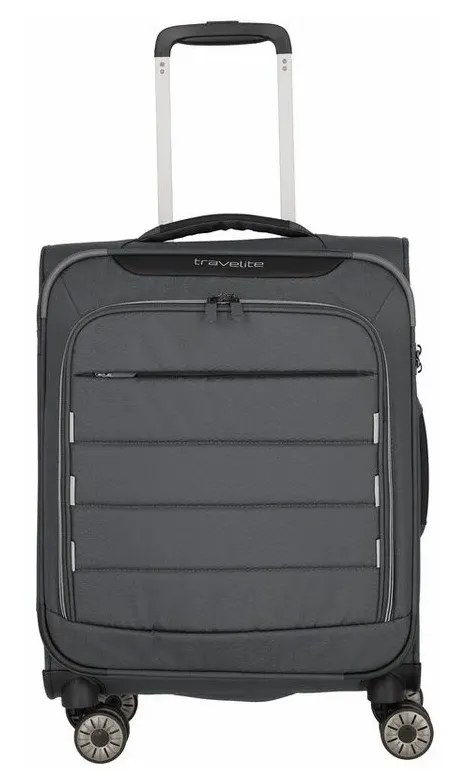 Verfügbarkeit: 1-2 Werktage - Kategorie: Trolleys - Travelite - GTIN:4027002078161 - Der Travelite Skaii 4-Rollen Trolley L 78 cm in Panoramablau ist nicht nur ein stilvolles Gepäckstück, sondern auch nachhaltig hergestellt aus recyceltem Polyester. Mit seinem großzügigen Fassungsvermögen und den praktischen 4 Rollen ist er der ideale Begleiter für Ihre Reisen. - 111,96 Euro bei Koffer-Plus - gefunden von billiger.de Dieser 2-Rollen Kabinentrolley in Gipfelgrau ist eine robuste und praktische Option für Handgepäck, besonders wenn Sie eine klassische 2-Rollen-Variante bevorzugen. ![]() ![]() Travelite Skaii 2-Rollen Kabinentrolley 55 cm -Gipfelgrau