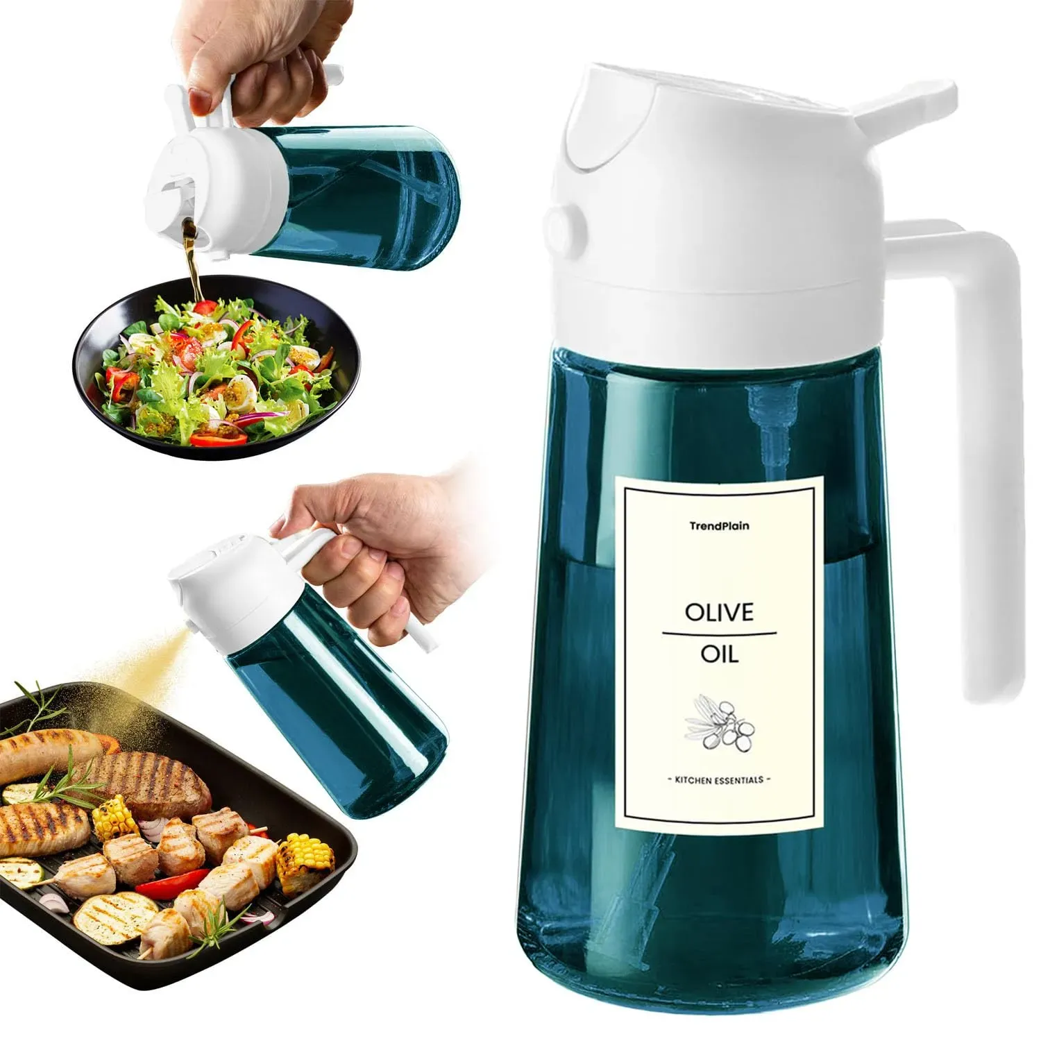 Auf Lager Versand durch AmazonTrendPlain - 470ml Öl Sprühflasche - 2 in 1 Ölspender und Ölsprüher - Ölspray mit Etiketten - Küchen Gadgets für Kochen, Salat und Grill - mit lichtschützendem Design - Schwarz & Himmelblau