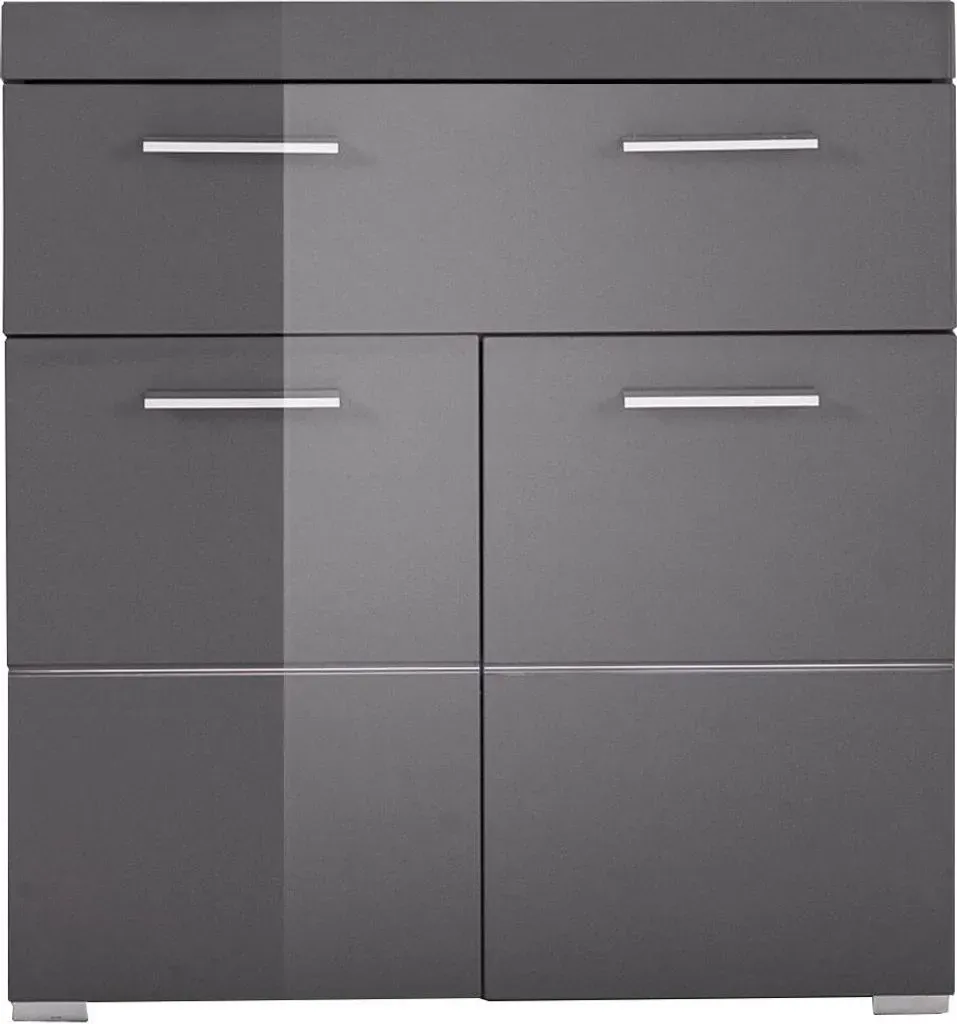 Auf Lager Versand durch Amazontrendteam smart living - Amanda - Kommode - Grau Hochglanz - Standschrank - (BxHxT) 73 x 79 x 31 cm - 2 Türen mit moderner Fräsung und 1 großen Schublade - silberfarbene Griffe - Kratzfest