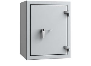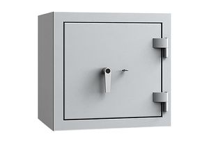 Tresore Wohnen Haus Garten Heimwerken Sicherheitstechnik - - Feuergeschützter Wertschutzschrank, VdS Klasse I, S 120 P, HxBxT 590 x 605 x 560 mm. Anlieferung = montiert. Einsatzbereich = Einbruchschutz, Wertsicherung, Brandschutz, Papiersicherung. Feuerschutz = S 120 P nach EN 1047-1. Einbruchschutz = Klasse I nach EN 1143-1. Höhe = 590 mm. Breite = 605 mm. Tiefe = 560 mm. Verschlussart = Doppelbart-Hochsicherheitsschloss. Ausstattung = 1 Fachboden. Anzahl Bohrungen = 1 Stück. Innenhöhe = 374 mm. Innenbreite = 448 mm. Innentiefe = 386 mm. Volumen = 56 Liter. Türstärke = 132 mm. Korpusstärke = 72 mm. Material = Stahl, lackiert. Farbe = lichtgrau RAL 7035. Anzahl Ordner = 6 Stück. Anzahl Türen = 1 Stück. Gewicht = 198 kg. Produkttyp = Wertschutzschränke mit Brandschutz. Zolltarifnummer = 83030040. Herkunftsland = POL. Bruttogewicht = 202.2 kg. Gewicht = 198 kg. Mit geprüftem und zertifiziertem Einbruchschutz nach EN 1143-1 und Feuerschutz für Dokumente nach EN 1047-1. Ausführung Korpus und Tür mehrwandig. Durch spezielle Füllungen und Dichtungen sind darin aufbewahrte Dokumente optimal vor Bränden und Löschwasser geschützt. Verschluss Doppelbart-Sicherheitsschloss der VdS-Klasse I mit 8 zwangsläufig wirkenden Zuhaltungen. 2 Schlüssel. Bohrsichere Mangan-Panzerplatte im Tür- und Schlossbereich. Verriegelung über Schließbolzen mit mehrseitiger Wirkung. Einbruchsicherheit Definierter Einbruchschutz gegen Angriffe mit mechanischen und thermisch wirkenden Einbruchswerkzeugen. ... ![]() Wertschutzschrank, VdS-Klasse N/0, LFS 30 P, HxBxT 806 x 636 x 510 mm kaiserkraft