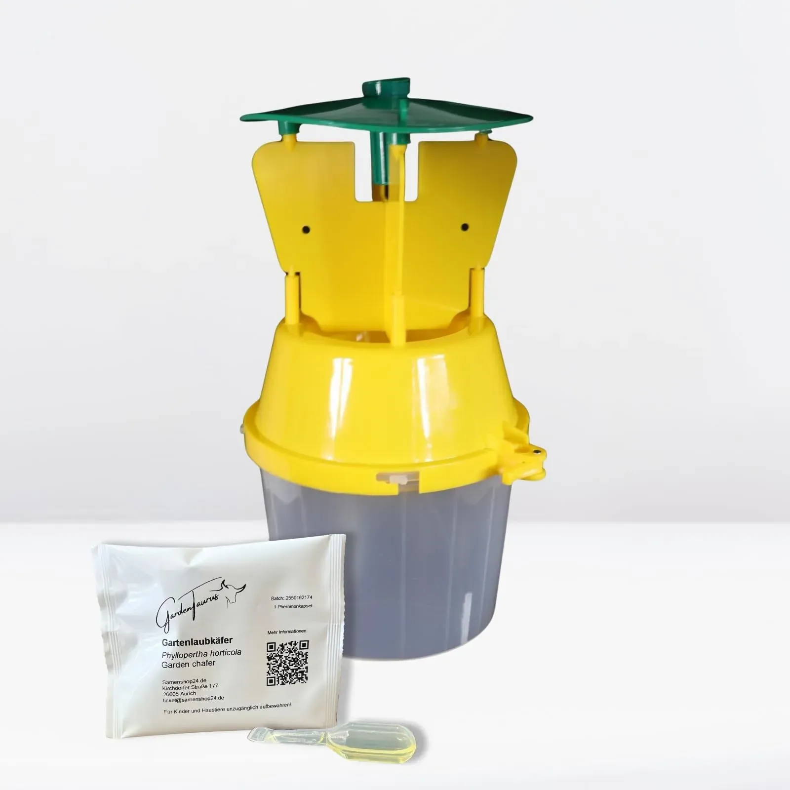 Kategorie: Pflegemittel & Schädlingsbekämpfung - gardentaurus - GTIN:4260643076015 - Effizientes Design: Der trichterförmige Eingang leitet Schädlinge sicher in den Auffangbehälter, aus dem sie nicht mehr entkommen können. Langlebiges Material: Hergestellt aus wetterbeständigem Material für den Einsatz im Freien. Einfache Anwendung: Leicht zu platzieren und zu reinigen, ideal für den langfristigen Gebrauch. Pestizidfrei: Chemikalienfreie Methode, die sicher für Kinder, Haustiere und die Umwelt ist. Achtung: Falle enthält keine Pheromone! Bitte beachten: Diese sind separat oder als Set mit GardenTaurus Trichterfalle erhältlich. - 22,95 Euro bei Amazon Marketplace Lawn & Garden - gefunden von billiger.de Diese GardenTaurus Trichterfalle ist eine effektive Lösung für Gartenlaubkäfer und wird direkt mit Pheromon geliefert. ![]() ![]() gardentaurus Gartenlaubkäfer Trichterfalle inkl. 1 Pheromon zum effektiven Fang von Gartenlaubkäfer wiederverwendbar, einfach zu verwenden (Trichterfalle Gartenlaubkäfer)