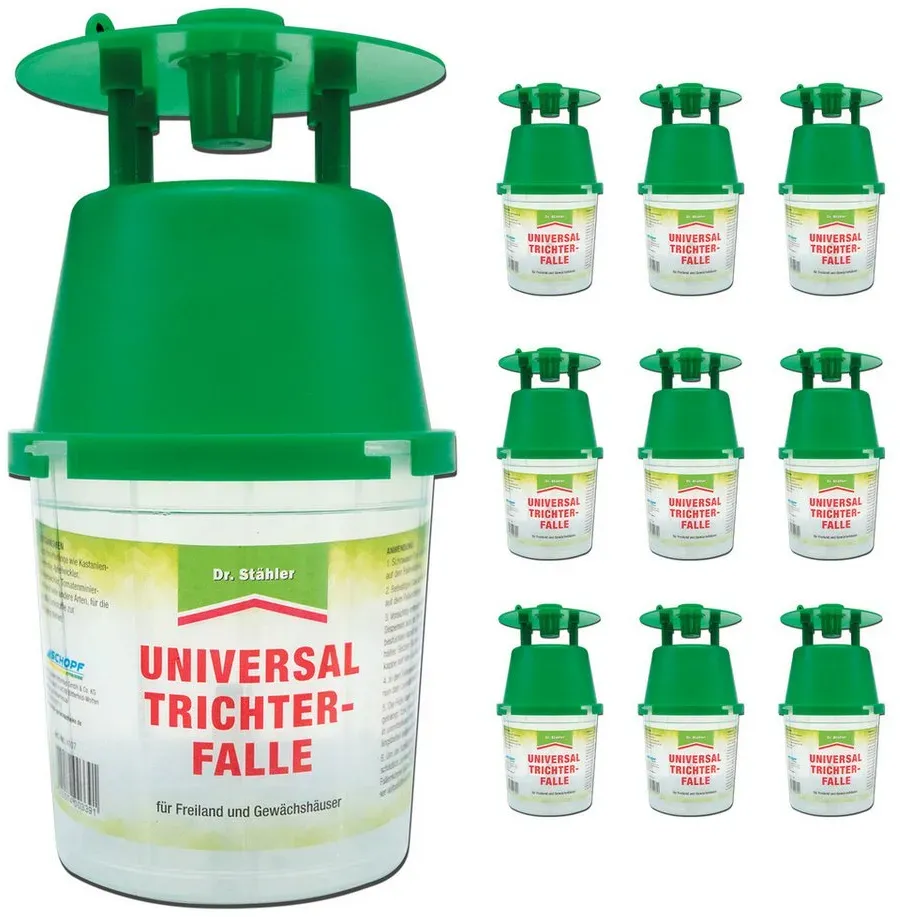 Beliebte Modelle sind z.B. die Dr. Stähler Universal-Trichterfalle, die für verschiedene Schadschmetterlinge geeignet ist und mit unterschiedlichen Pheromon-Dispensern kombiniert werden kann[1]. Zum Preisbereich: Trichterfallen liegen meist im mittleren Preissegment. Die Falle selbst kostet oft zwischen 15 und 40 Euro, Pheromon-Dispenser sind separat und kosten zusätzlich, meist einige Euro pro Stück. Es lohnt sich, auf Qualität und passende Lockstoffe zu achten, um eine effektive Überwachung und Bekämpfung zu gewährleisten[1][3]. Zusammengefasst sollten Sie beim Kauf einer Trichterfalle auf passende Lockstoffe, robuste Verarbeitung, einfache Handhabung und Zielgenauigkeit achten. Empfehlenswerte Marken sind z.B. Dr. Stähler. Der Preis liegt typischerweise zwischen 15 und 40 Euro für die Falle, zuzüglich Kosten für Lockstoffe. Für eine gezielte Produktsuche können Sie z.B. nach Dr. Stähler Universal-Trichterfalle suchen. Jetzt live Suche nach trichterfalle starten! Empfohlene Trichterfalle Angebote*Durch Käufe über Links zu Händlern kann diese Website eine Provision erhalten, u.a. durch das eBay Partner Network und das AmazonPartnerNetDieses preiswerte 10er-Set ist ideal für die Bekämpfung von Wespen und Bienen im Außenbereich und bietet ein gutes Preis-Leistungs-Verhältnis. ![]() Blumenform, fliegende Insekten, Trichterfalle, 10 Stück, Kunststoff-Wespenfallen, Outdoor-Hängefalle, wiederverwendbar, für gelbe Jacken, Bienenfänger