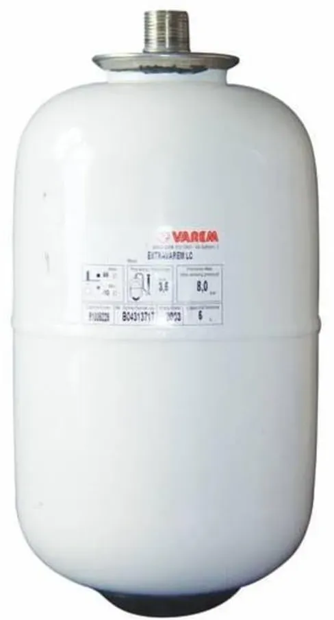 Kategorie: Ausdehnungsgefäße - Varem - GTIN:4260664490142 - Für Brauchwasser und Trinkwasser geeignet Einfache Montage ohne Spezialwerkzeug Vordruck 3,5 bar eingestellt Maximaler Druck: 8 bar Tüv und CE geprüft - 41,50 Euro bei Amazon Marketplace Home Improvement - gefunden von billiger.de ![]() ![]() Ausdehnungsgefäß Trinkwasser - Brauchwasser 18l eBay Druckbehälter Membran Sanitärgefäß
