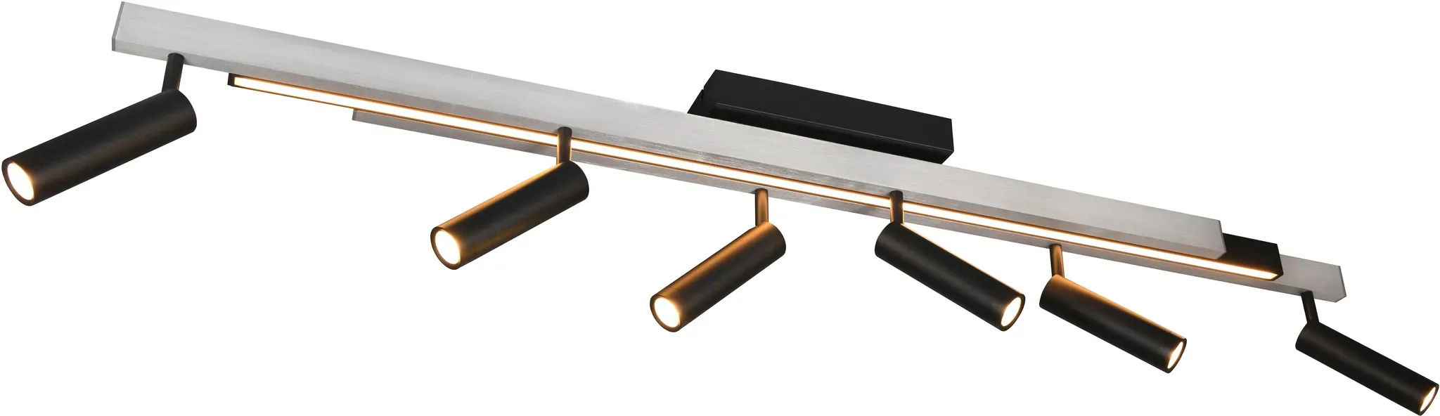 Verfügbarkeit: 1 Woche - Kategorie: Deckenleuchten - Trio - GTIN:4017807627305 - Vielseitige Beleuchtung im stilvollen Design €“ Die Deckenleuchte ZENO beeindruckt durch drei parallel angeordnete, längliche Elemente, die sich einfach auseinanderziehen lassen, um das Licht individuell an Ihre Bedürfnisse und den Raum anzupassen. Zusätzlich bieten sechs bewegliche Spots weitere Möglichkeiten für eine gezielte Lichtgestaltung in Ihren Wohnräumen. Mit der mitgelieferten Fernbedienung können Sie stufenlos Lichtfarbe und Helligkeit komfortabel aus der Ferne steuern. Das schwarz matte Metall verleiht der Leuchte eine elegante und moderne Ausstrahlung. Darüber hinaus verfügen die Leuchten über moderne LED-Technologie, die für eine hohe Lichtqualität steht. LED-Lichtquellen zeichnen sich durch eine lange Lebensdauer und eine geringe Wärmeentwicklung aus., Optik/Stil: Farbbezeichnung: aluminium schwarz, Form: eckig, Material: Material Gestell: Metall, Maßangaben: Höhe: 23 cm, Breite: 180 cm, Tiefe: 8,5 cm, Produktdetails: Schutzklasse: 2, Leuchtmittel: LED fest integriert, Anzahl Flammen: 6, Fassung: LED-Board, Lichtfarbe: warmweiß - kaltweiß, Eigenschaften: verstellbare Spots, Schalter: Fernbedienung, Modellbezeichnung: ZENO, Einbauort: Decke, Betriebsart: Netzkabel, Lichtstrom in Lumen: 650 lm, Farbtemperatur in Kelvin: 2700 - 6500K, Funktionen: getrennt schaltbar, Lieferumfang: Aufbauanleitung, Einsatzbereich: Indoor, Schutzart: IP20, Gewicht: 3,94 kg, ... Die GRAU NiceOne Rain Trio 30 LED Deckenleuchte ist eine hochwertige Designleuchte im oberen Preissegment für anspruchsvolle Kunden. Designtoli ke.de
