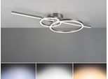 lieferbar-in 4-5 Werktagen bei dirTRIO Leuchten LED Deckenleuchte MONTILLA, Deckenlampe mit Fernbedienung Lichtfarbe einstellbar dimmbar, CCT - über Fernbedienung, Dimmfunktion, Memoryfunktion, Nachtlichtfunktion, LED fest integriert, Farbwechsler, warmweiß - kaltweiß, Memoryfunktion + Nachtlicht, als Wandlampe oder Deckenlampe 6300 Lumen silberfarben