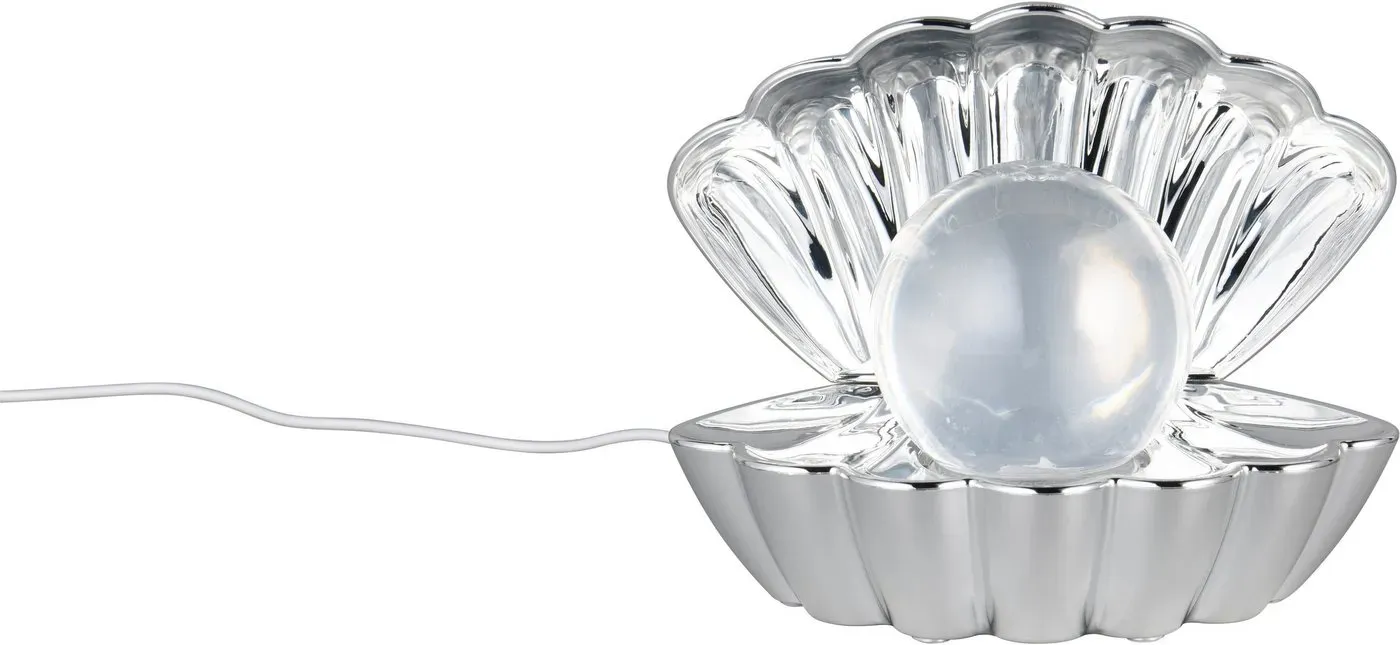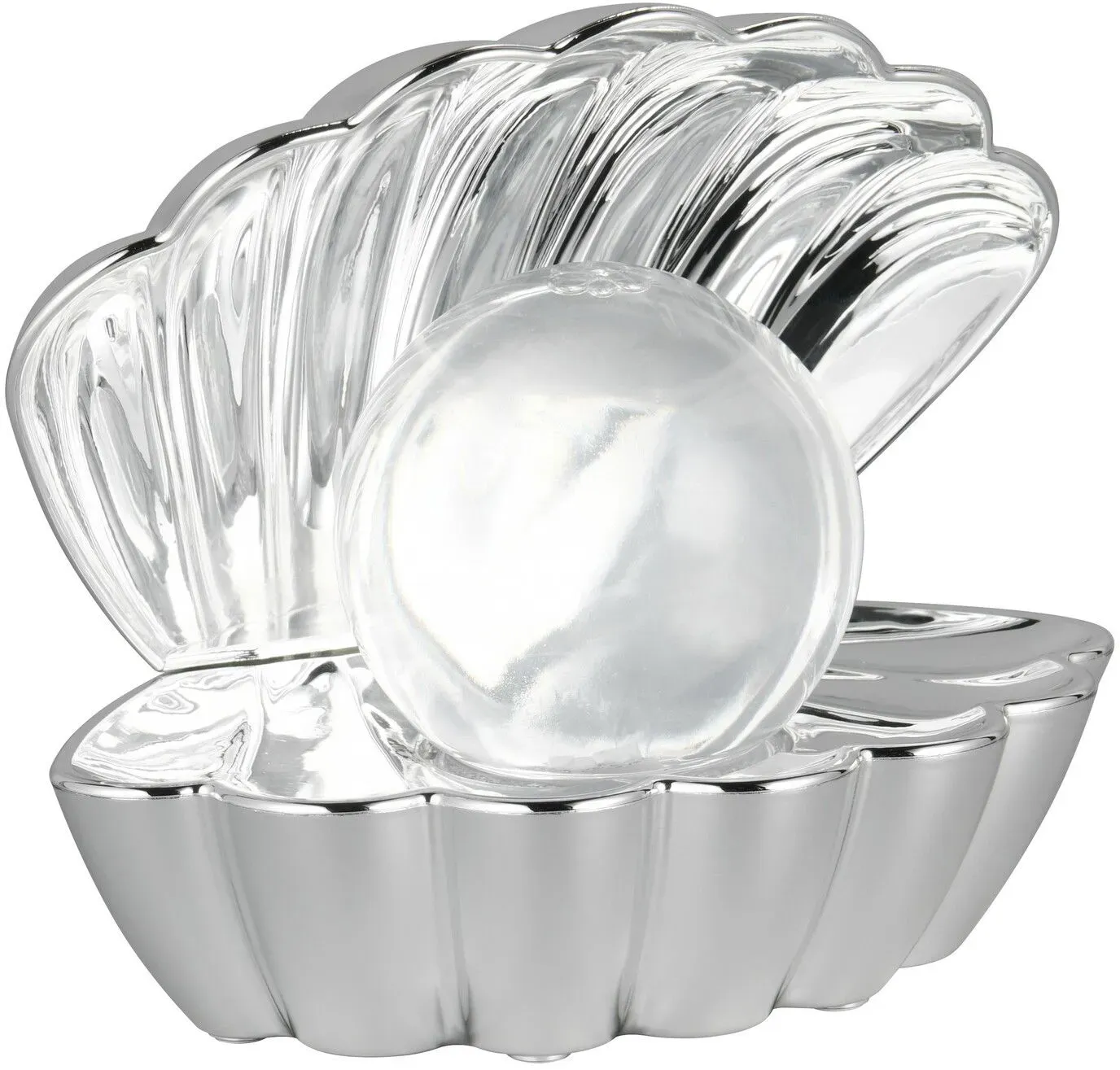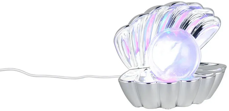 lieferbar-in 4-5 Werktagen bei dirTrio Reality Leuchten LED Tischleuchte SHELLY, Deko Tischlampe in Muschelform mit RGB Farbwechsel, 0,8W 15Lm, Ein-/Ausschalter, Farbwechsel, USB-Ladefunktion, LED fest integriert, RGB, Muschel Tischlampe mit Glitzerkugel und Farbwechsel inkl USB-Ladekabel silberfarben
