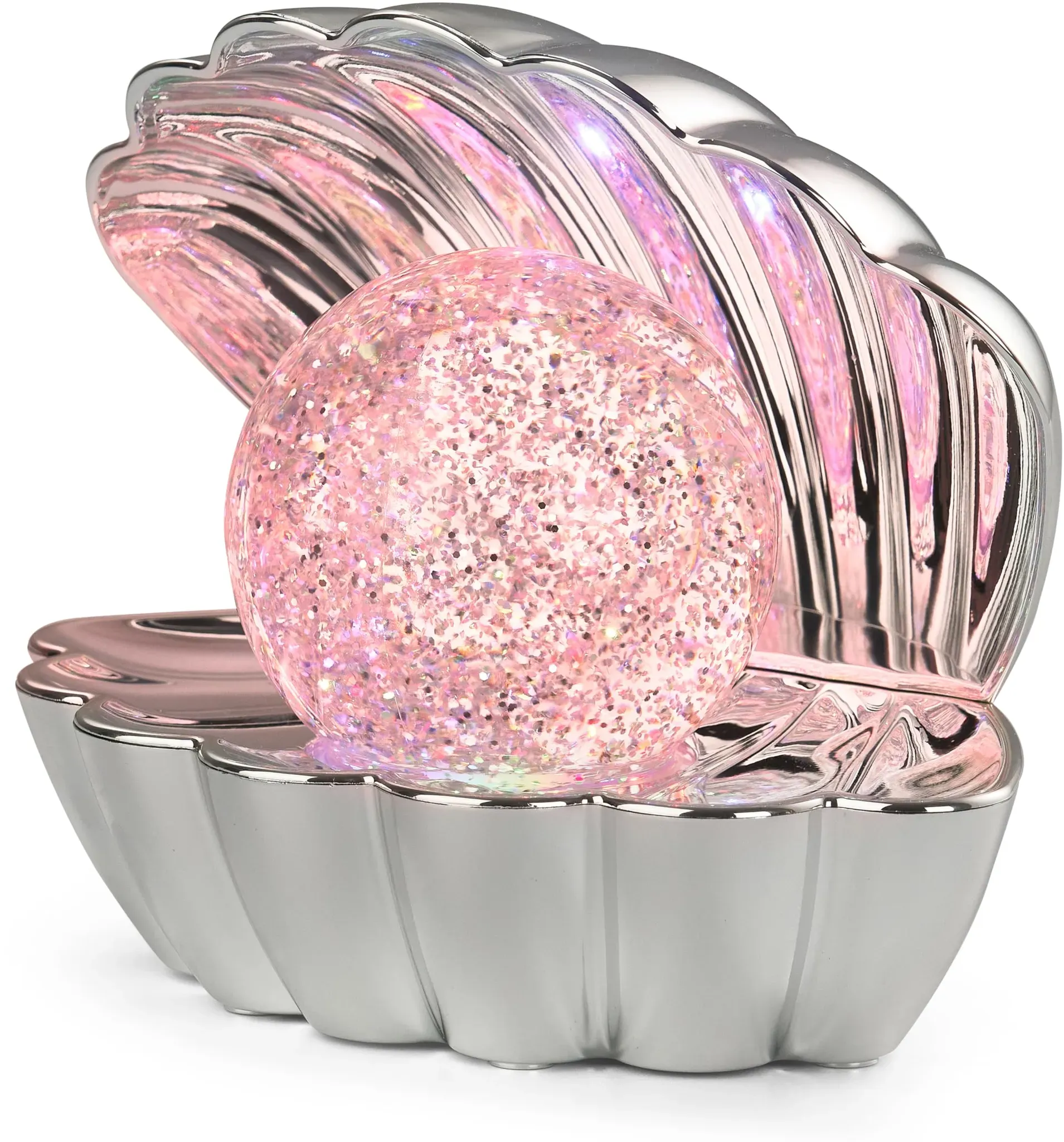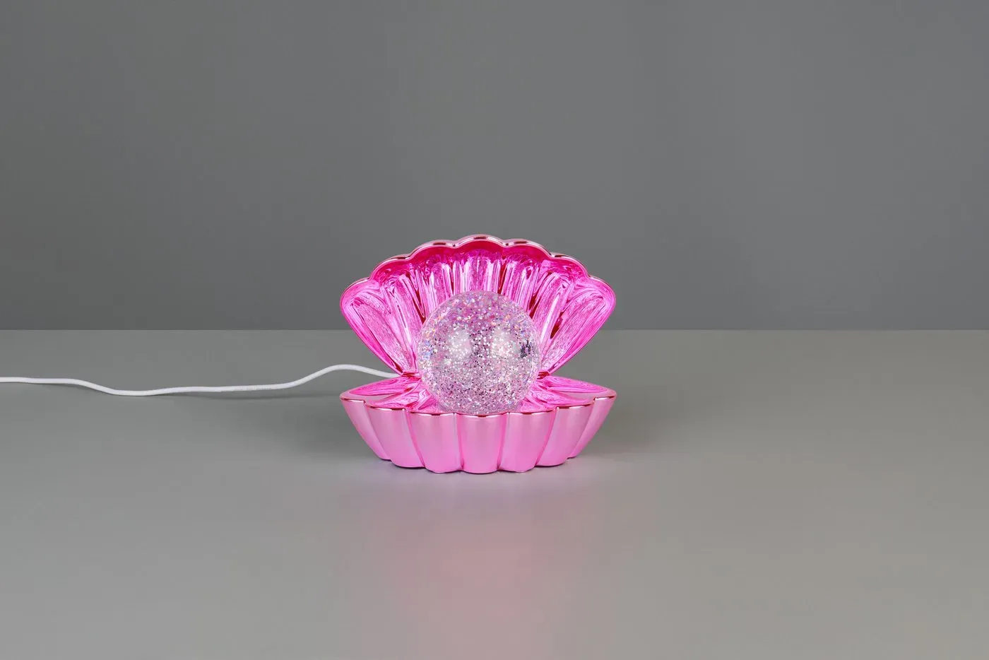 lieferbar-in 4-5 Werktagen bei dirTrio Reality Leuchten LED Tischleuchte SHELLY, Deko Tischlampe in Muschelform mit RGB Farbwechsel, 0,8W 15Lm, Ein-/Ausschalter, Farbwechsel, USB-Ladefunktion, LED fest integriert, RGB, Muschel Tischlampe mit Glitzerkugel und Farbwechsel inkl USB-Ladekabel rosa