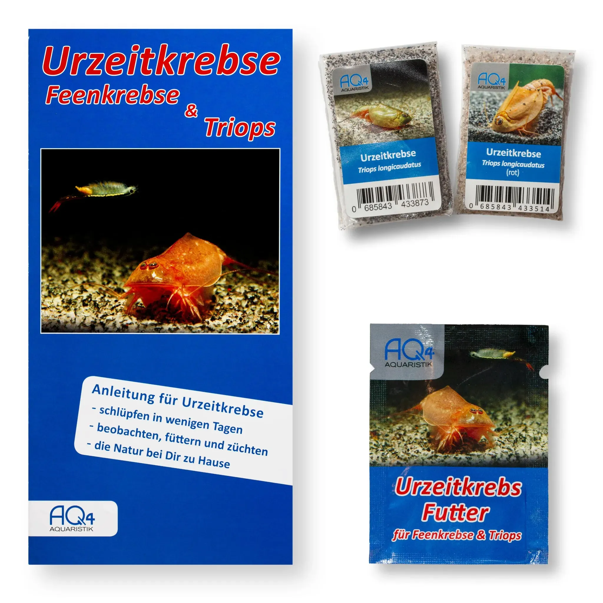 Zustand: Neu - 25,95 € / Stück - Wasserpflanzen Wasserpflanzen für Aquarien - AQ4Aquaristik - - EAN: 0685843434146 - Zwei Varianten von Triops longicaudatus im Kombi-Set mit jeweils zwei Tütchen Eiern in Sand für die eigene Urzeitkrebse Zucht im Aquarium. Triops longicaudatus wachsen sehr schnell und werden bis zu 9 cm groß, in Becken ab 2 Liter bei 21 - 28 °C zu halten Mit Urzeitkrebsfutter und umfangreicher Anleitung zum erfolgreichen Triops züchten Urzeitkrebs Eier (Zysten) sind ein Naturprodukt, bei dem der Erfolg von Wasser, Licht und Temperatur und den Eiern abhängt. AQ4Aquaristik testet jede Charge mehrfach. Eier sind allerdings im Sand ungleich verteilt und es können Eier dabei sein, die nicht oder erst nach mehrmaligem Trocknen reif zum Schlupf sind. Bei Fragen oder Problemen schreiben Sie AQ4Aquaristik für Hilfe unter Nennung des verwendeten Wassers und Lichtes bitte direkt an. - Verkäufer: aq4aquaristik im amazon.de Marketplace ![]() ![]() AQ4Aquaristik Triops longicaudatus 2er-Set - naturfarben und rot (2 Zuchtansätze, mit je ca. 100 Urzeitkrebs-Eiern), Starter-Set mit Futter und Anleitung
