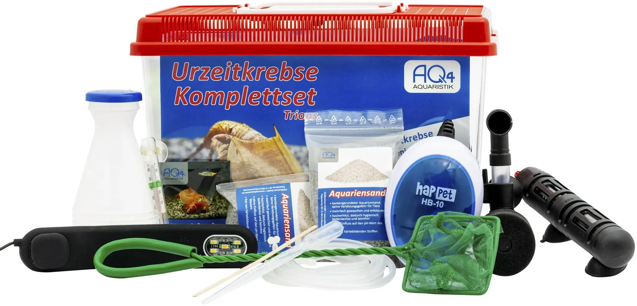 Zustand: Neu - 108,95 € / Stück - Einsteigersets Aquariensets für Einsteiger - AQ4Aquaristik - 0685843433545 - EAN: 0685843433545 - Das PREMIUM-Komplettset beinhaltet das gesamte Zubehör was Du für die erfolgreichen Triopszucht benötigst: 6-l-Aquarium, LED-Beleuchtung, Filter, Heizung, Luftpumpe, Kescher, Triops-Sand, Pipette, Urzeitkrebsdusche, Thermometer, Futter, 2 Zuchtansätze und Anleitung Hochwertiges Kunststoffbecken mit 6 Liter Volumen, super flexible LED-Beleuchtung, umfangreiche Anleitung mit Hintergrundbild Triops longicaudatus rot ist eine Farbvariante des bekannten Triops longicaudatus und für große und kleine Forscher spannend zu beobachten, leicht zu halten und zu züchten. Urzeitkrebs Eier (Zysten) sind ein Naturprodukt, bei dem der Erfolg von Wasser, Licht und Temperatur und den Eiern abhängt. AQ4Aquaristik testet jede Charge mehrfach. Eier sind allerdings im Sand ungleich verteilt und es können Eier dabei sein, die nicht oder erst nach mehrmaligem Trocknen reif zum Schlupf sind. Bei Fragen oder Problemen schreiben Sie AQ4Aquaristik für Hilfe unter Nennung des verwendeten Wassers und Lichtes bitte direkt an. - Verkäufer: aq4aquaristik im amazon.de Marketplace ![]() ![]() AQ4Aquaristik Triops longicaudatus (rot) Premium Komplett-Set mit Urzeitkrebs Eiern, 6 l Becken, LED-Beleuchtung, Zuchtansatz, Heizung, Filter, Luftpumpe, Kescher, Futter, Zubehör, Anleitung,